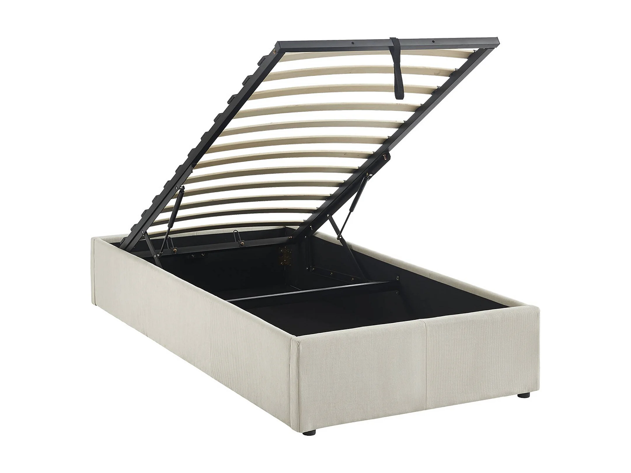 Cama con somier abatible 90x190cm, acabado en pana fina blanco
