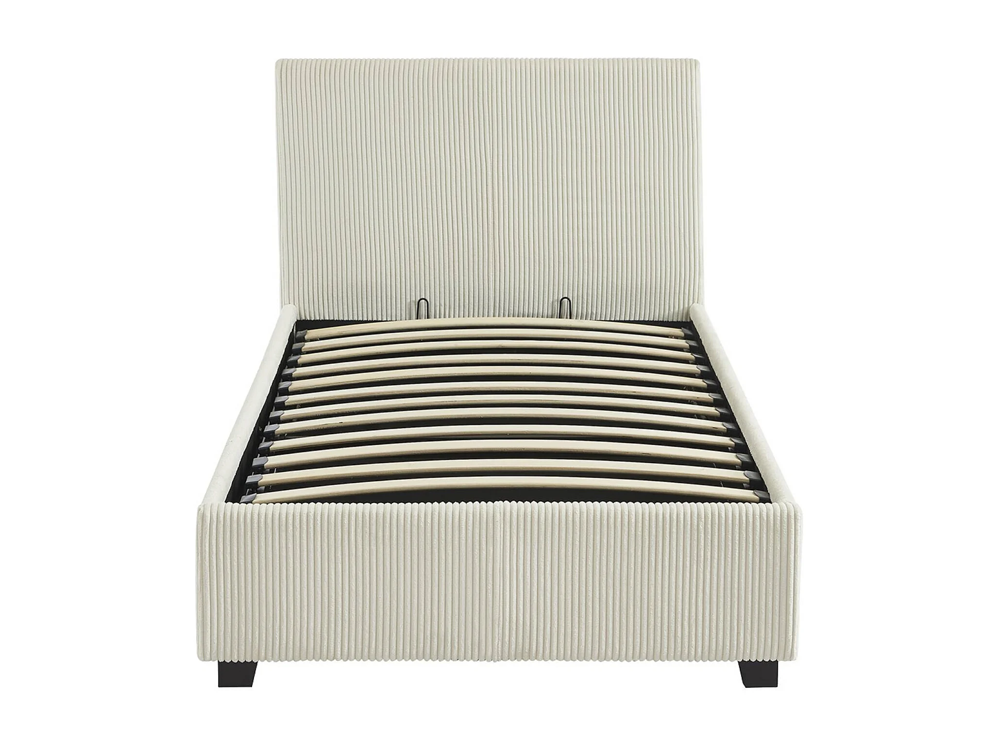 Cama con somier abatible y cabecero 90cm, acabado en pana fina blanco