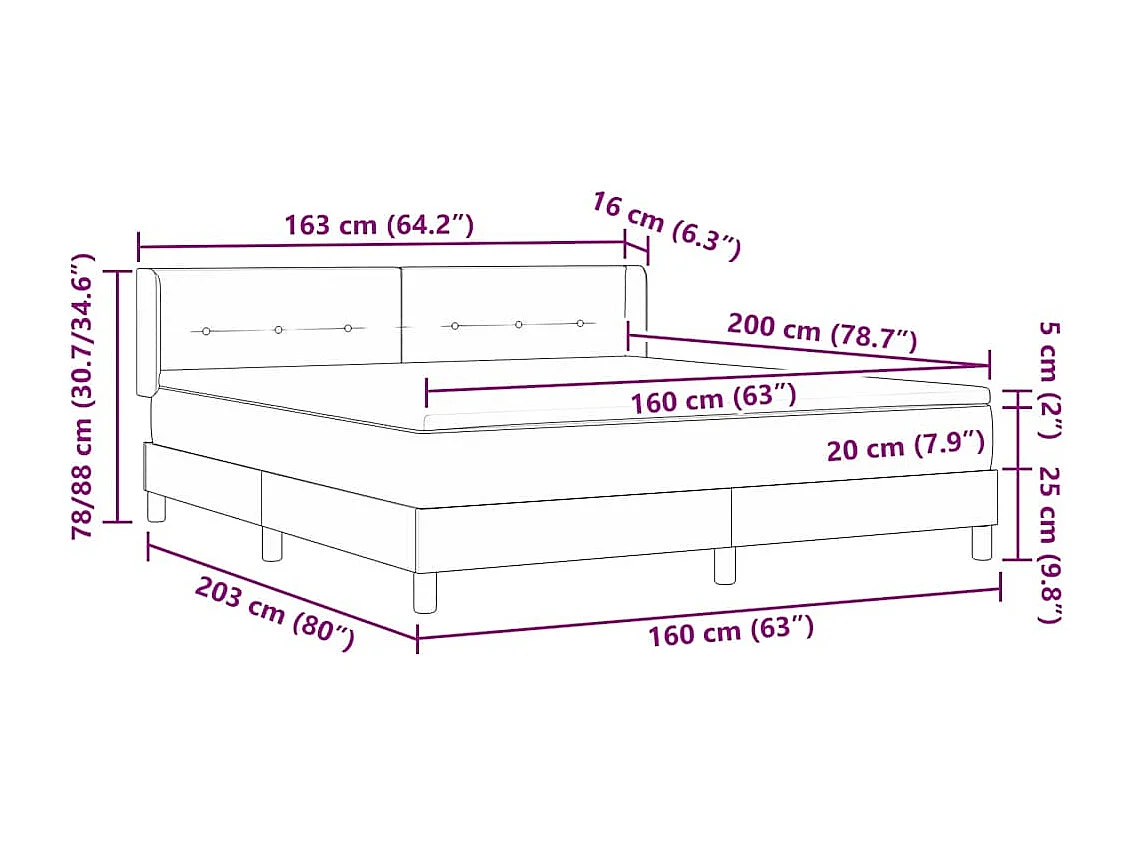 Cama con Somier con colchón con cabecera Azul 160 x 200 cm tela