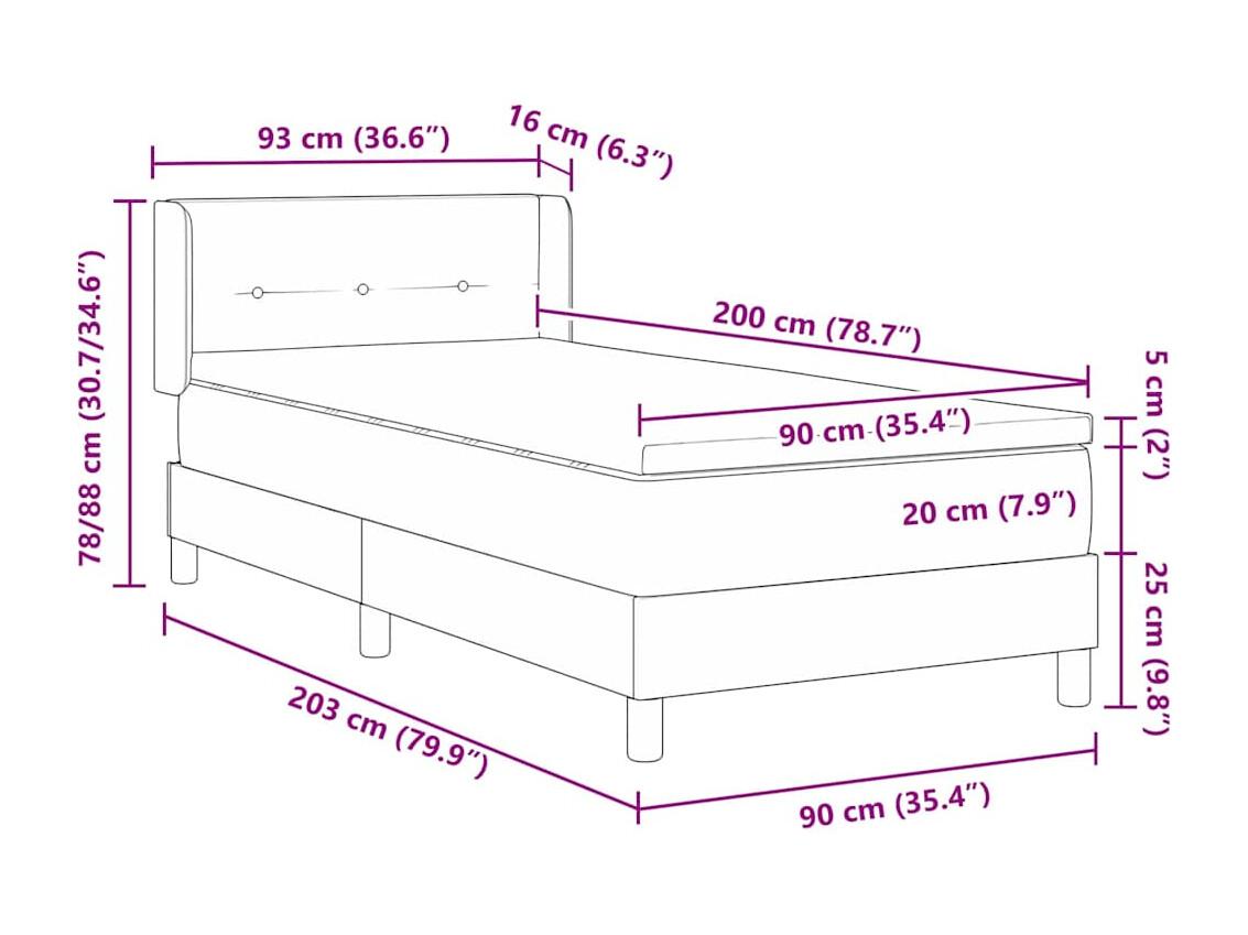 Cama box spring con colchón con colchón Azul 90 x 200 cm tela