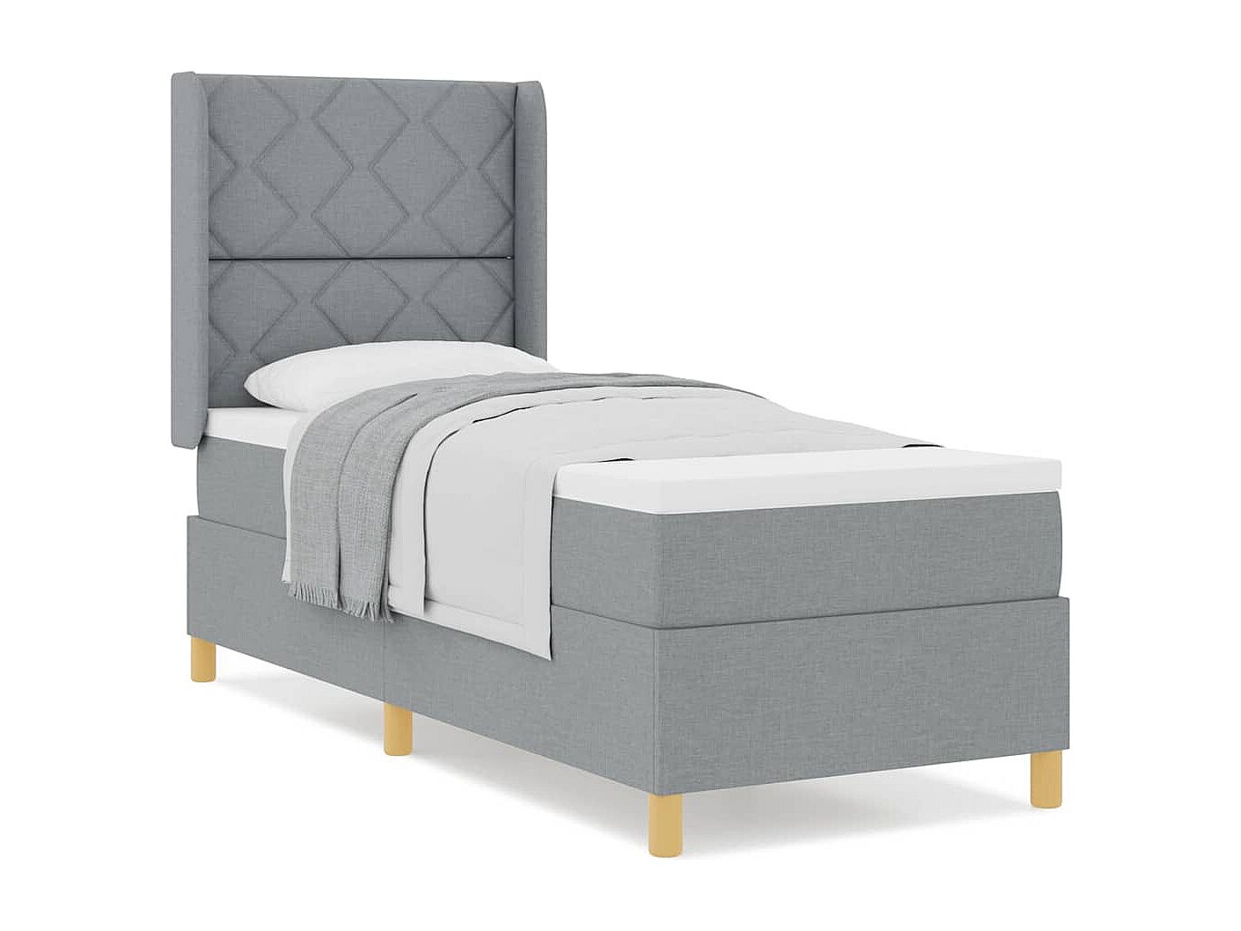 Cama tipo Box Spring con colchón Gris Claro 80 x 200 cm tela