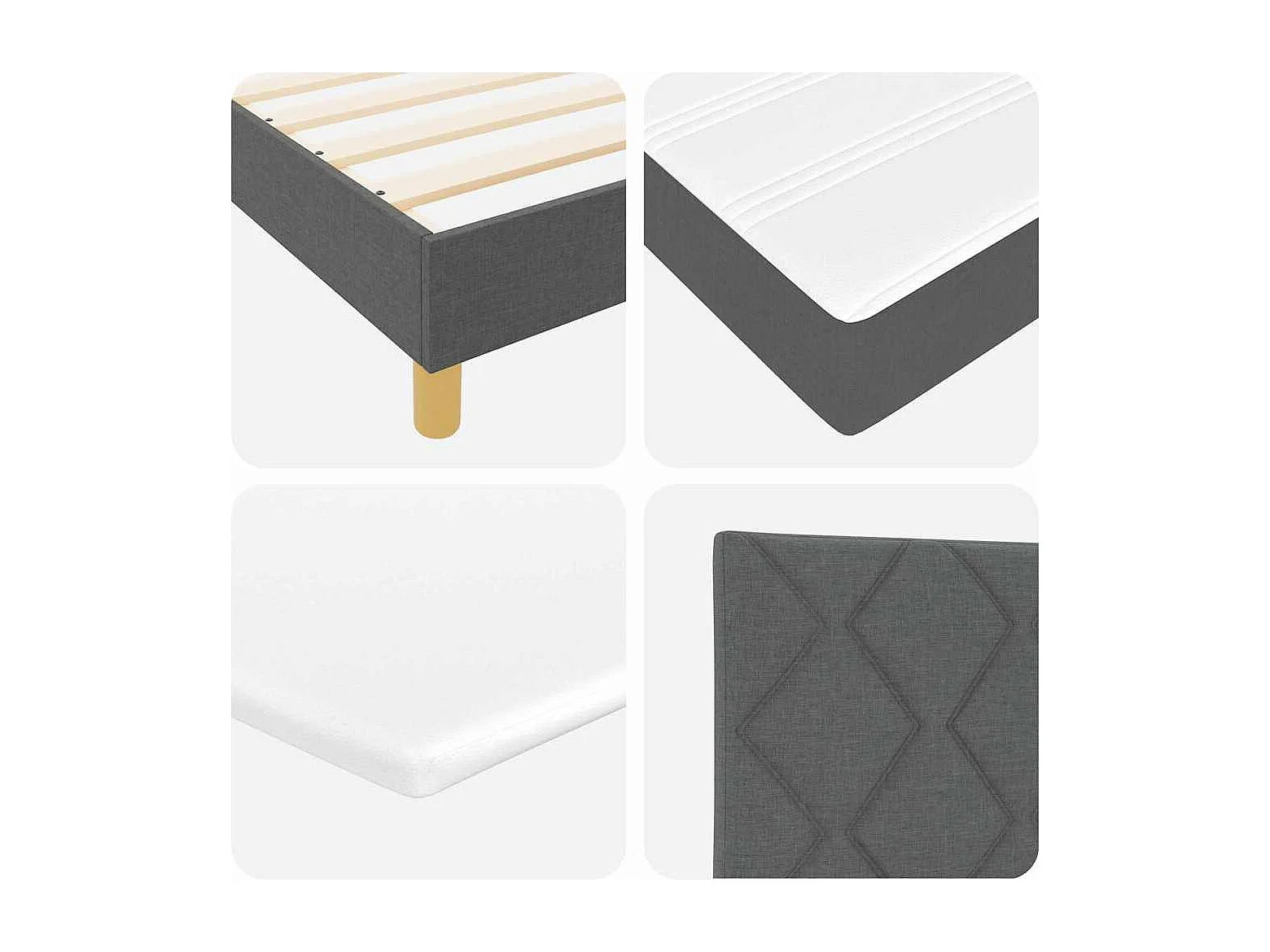 Cama con Somier con colchón Gris oscuro 180 x 200 cm tela