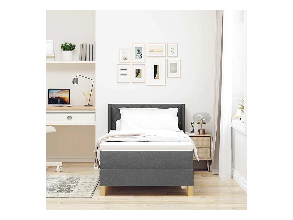 Cama box spring con colchón Gris oscuro 90 x 200 cm tela
