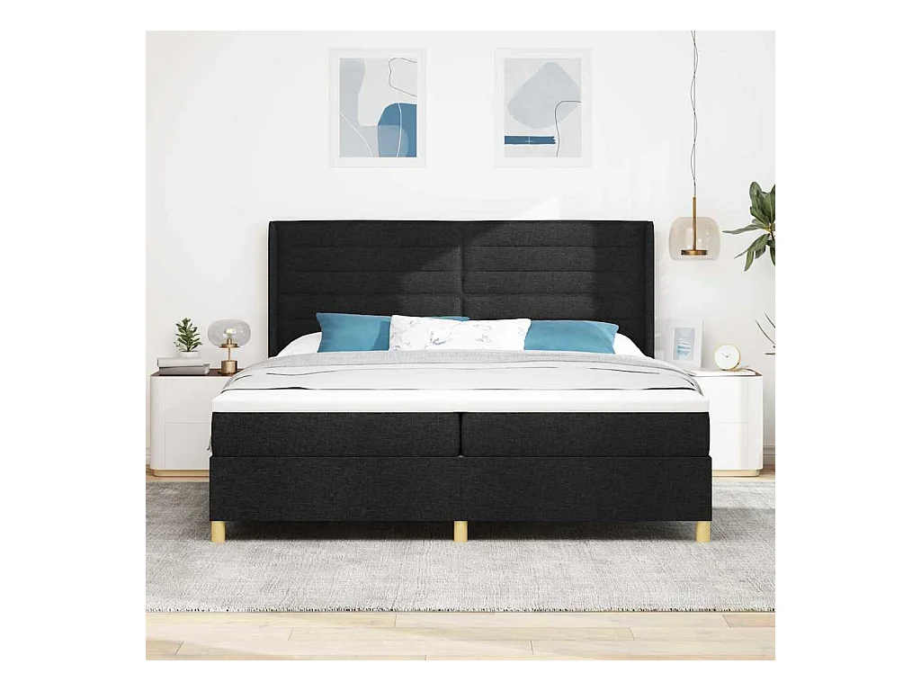 Cama con Somier con colchón Negro 200 x 200 cm tela