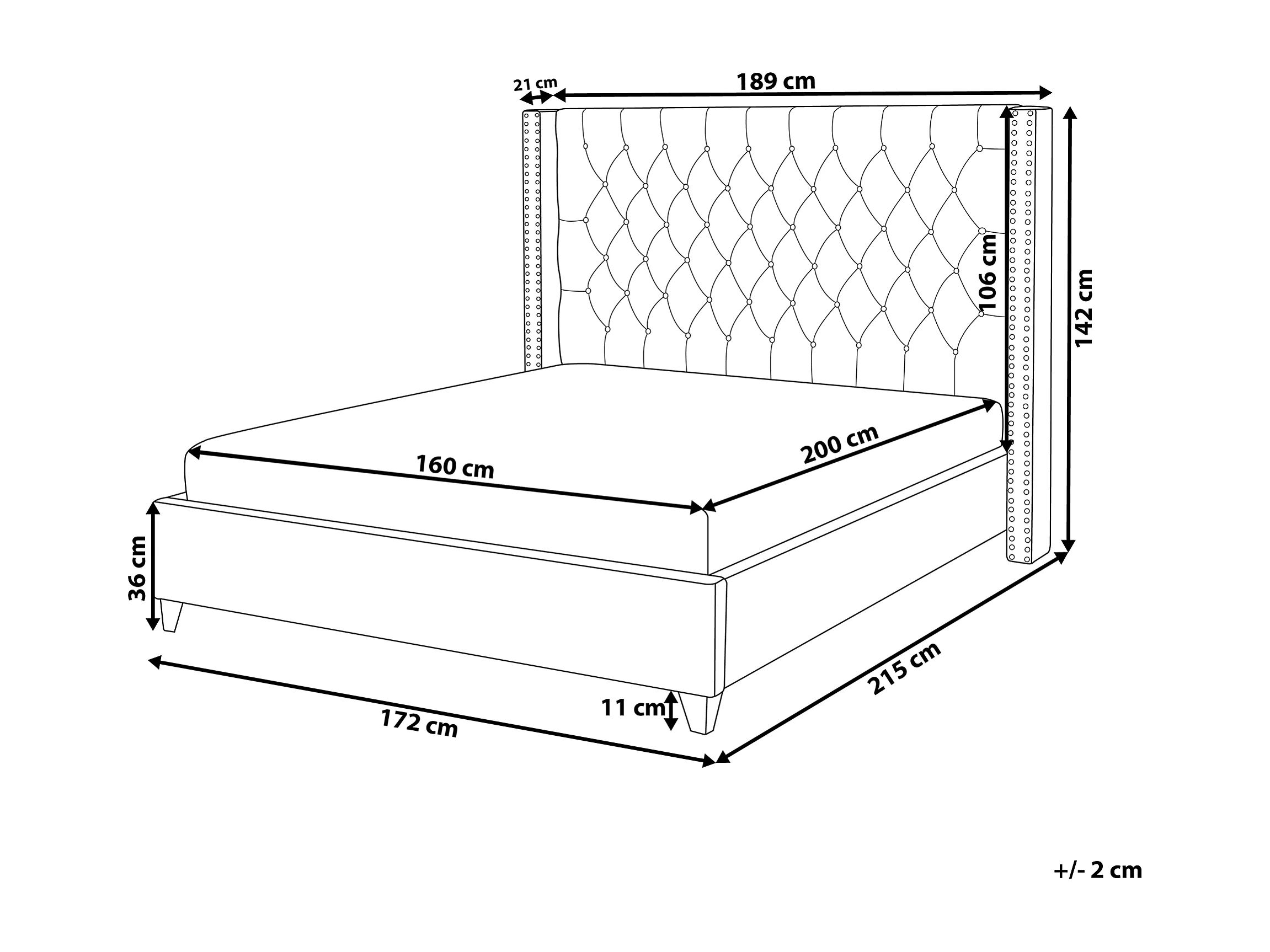 Cama Terciopelo LUBBON 160 x 200 cm Gris