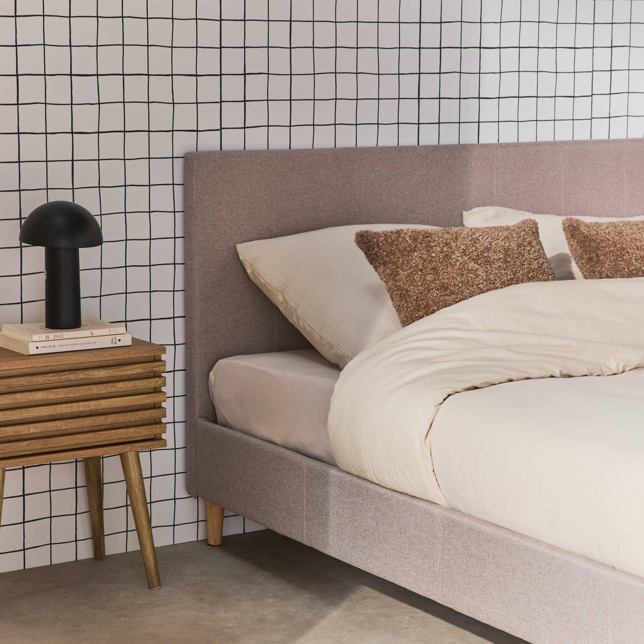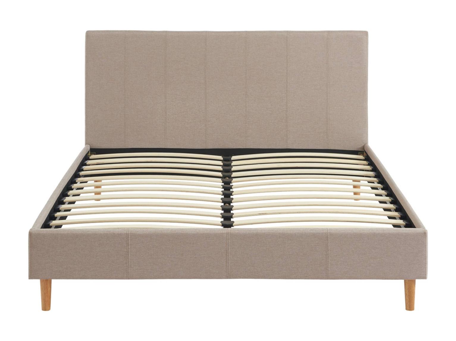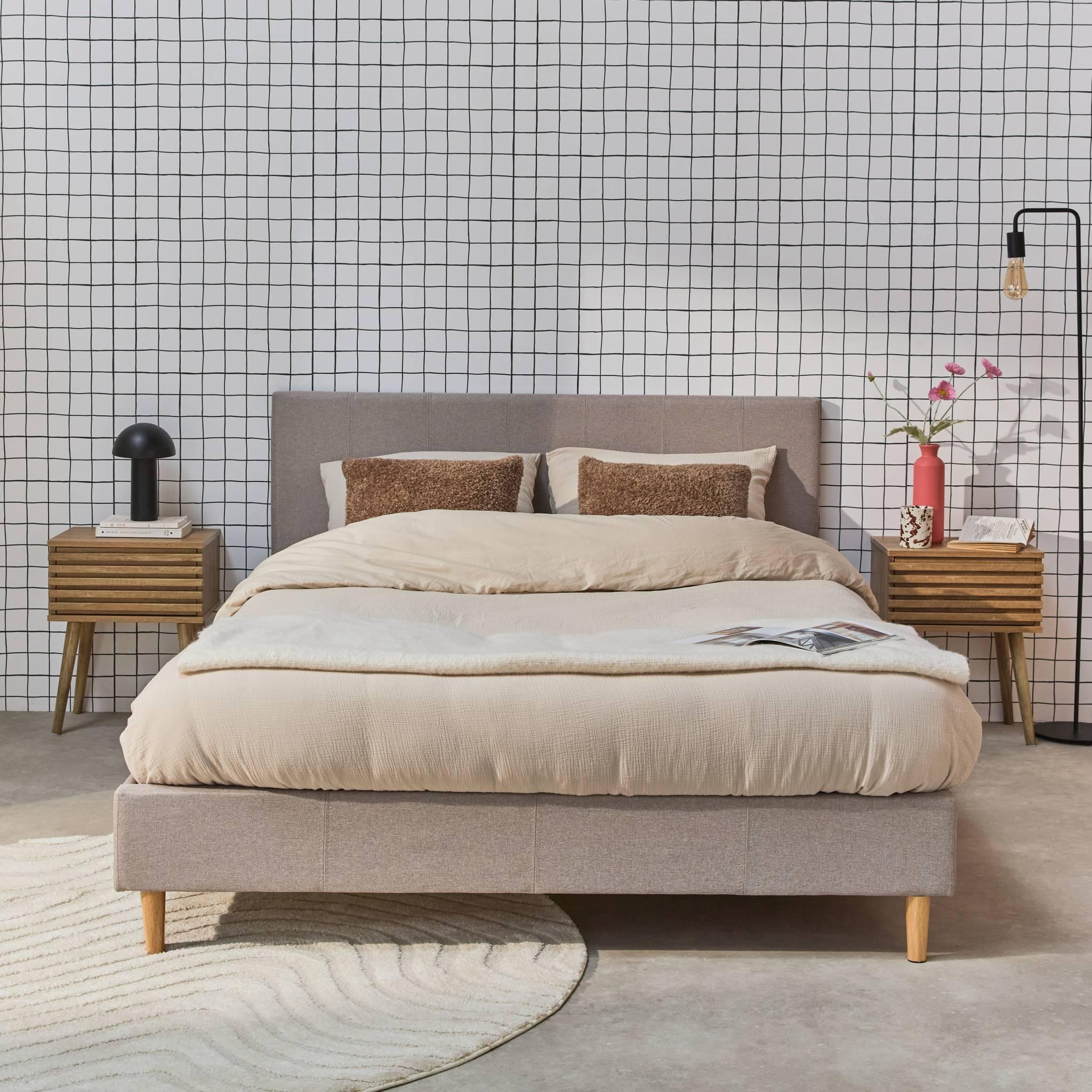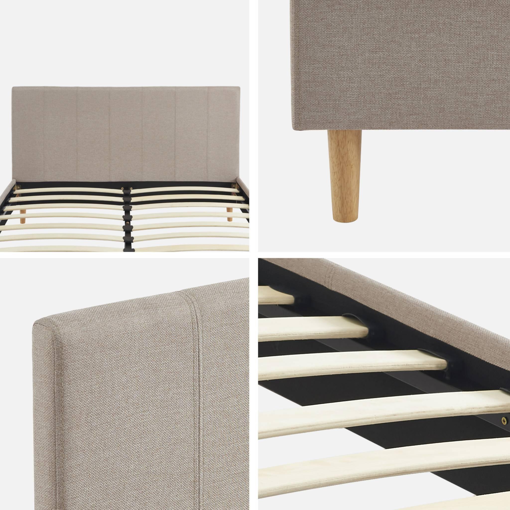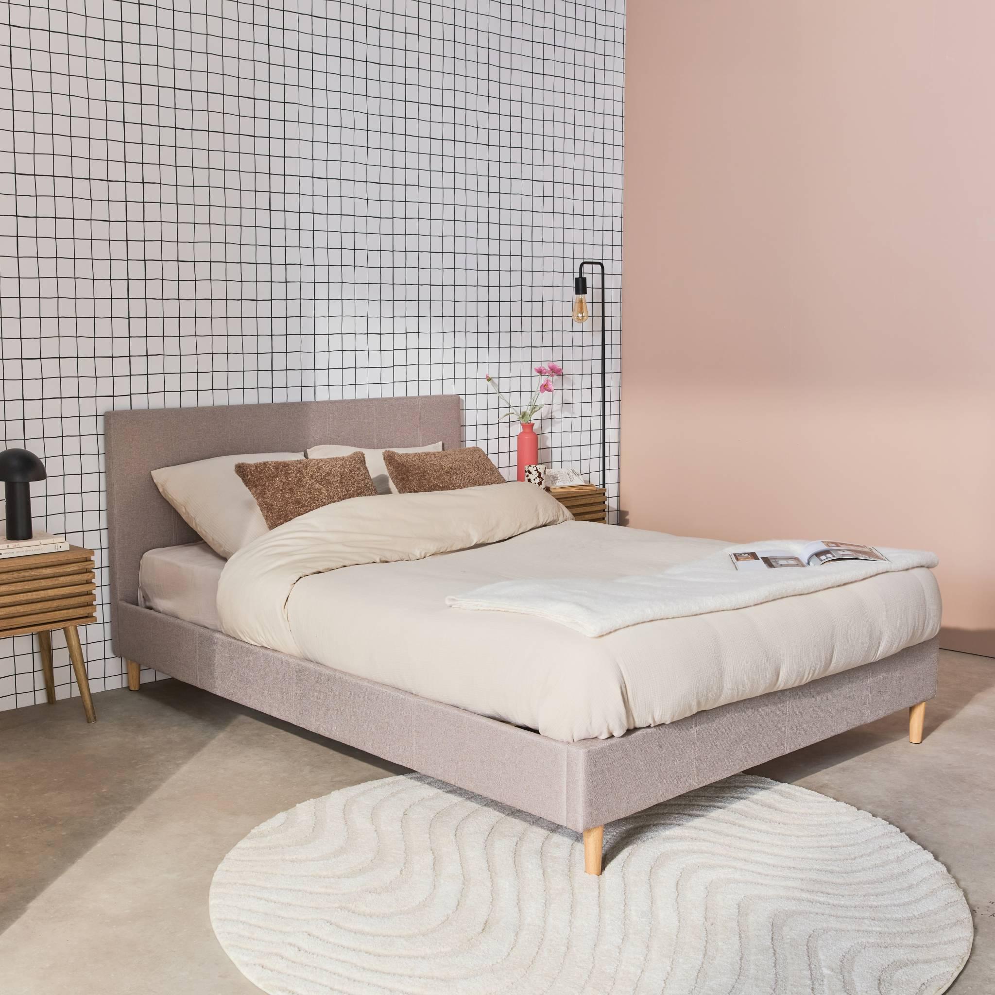 Cama con somier y cabecero 140cm, acabado en tela beige
