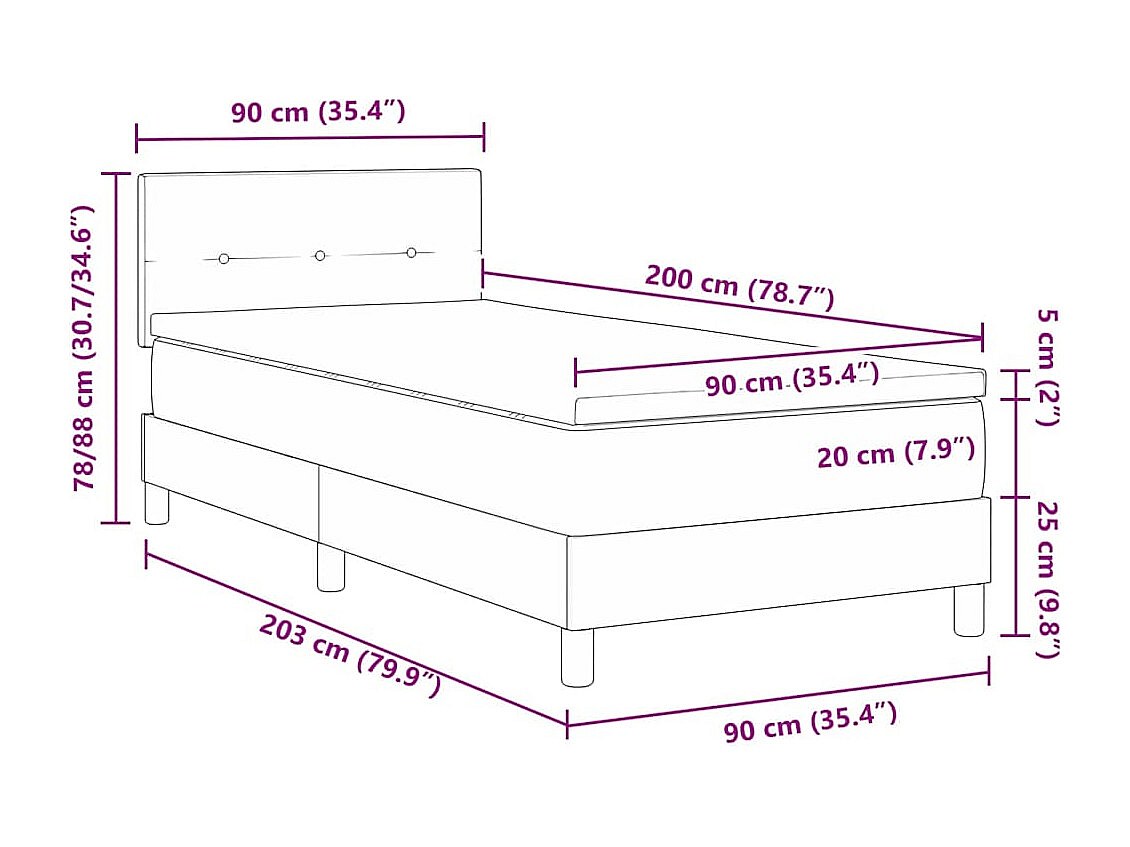 Cama box spring con colchón terciopelo negro 90x200 cm