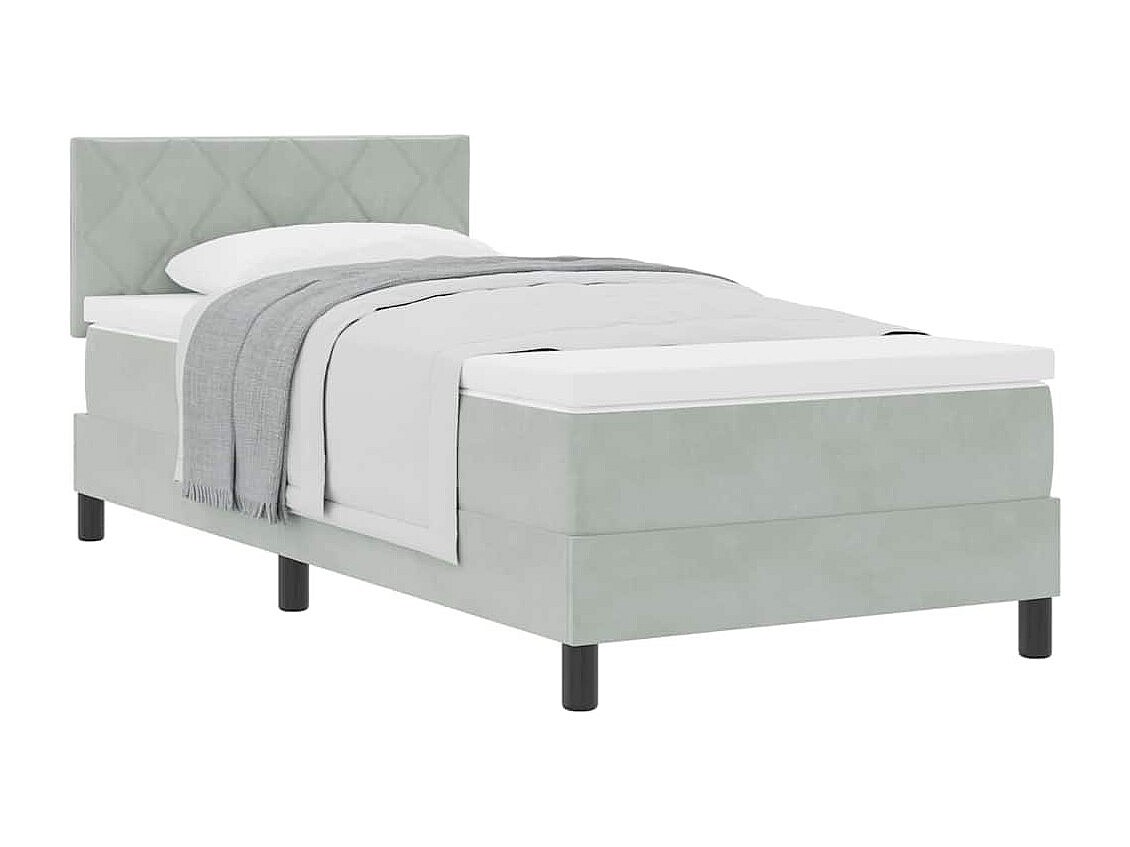 Cama box spring con colchón terciopelo gris claro 90x190 cm