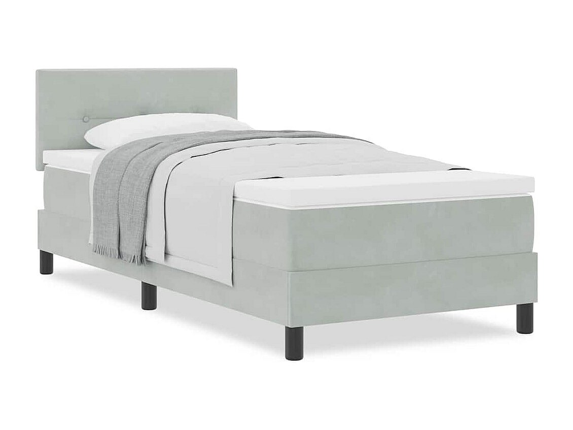 Cama box spring con colchón terciopelo gris claro 90x190 cm
