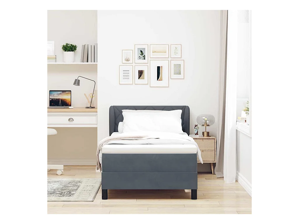 Cama tipo Box Spring Gris oscuro 90 x 190 cm Terciopelo