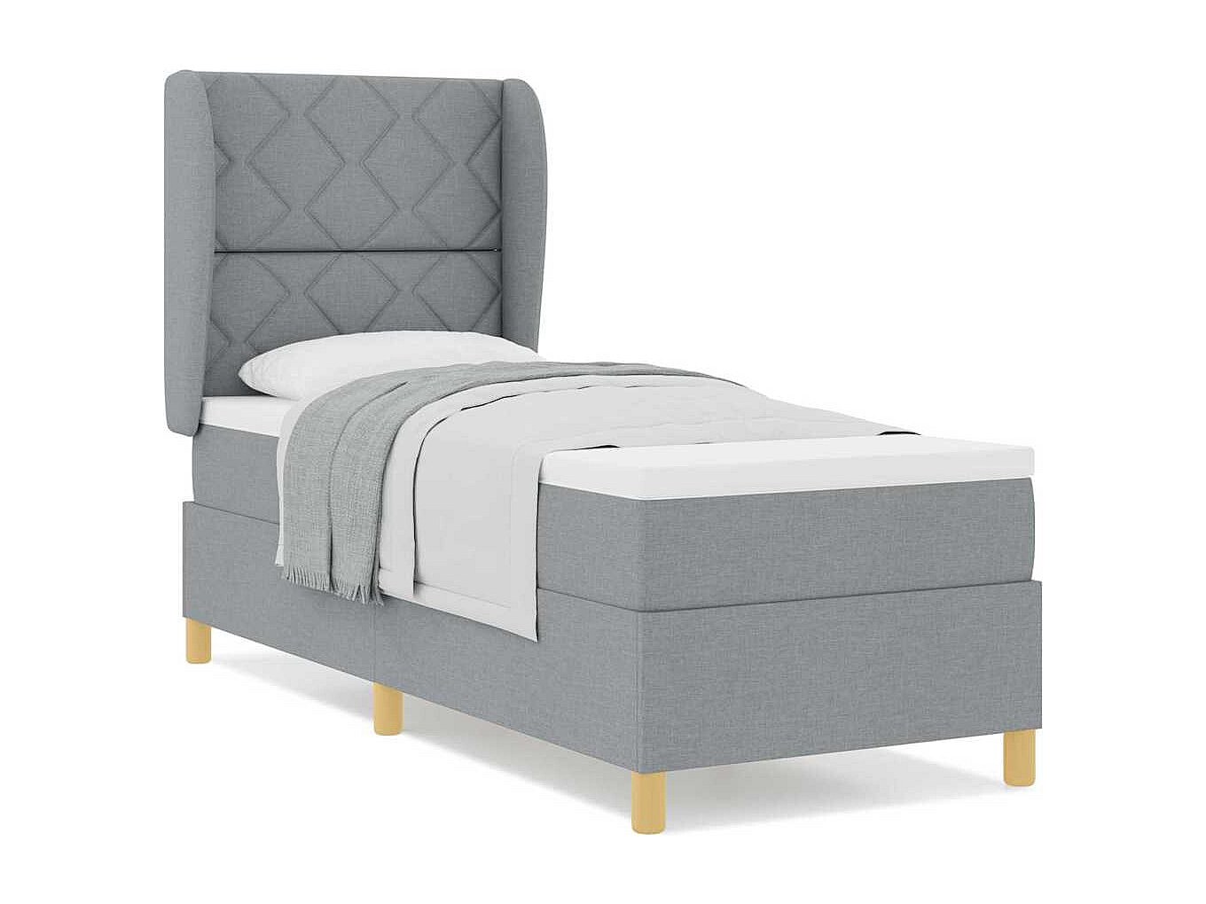 Cama tipo Box Spring con colchón Gris Claro 80 x 200 cm tela