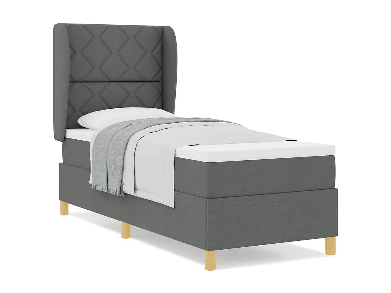 Cama con Somier y Colchón Gris Oscuro 90x190 cm de Tela
