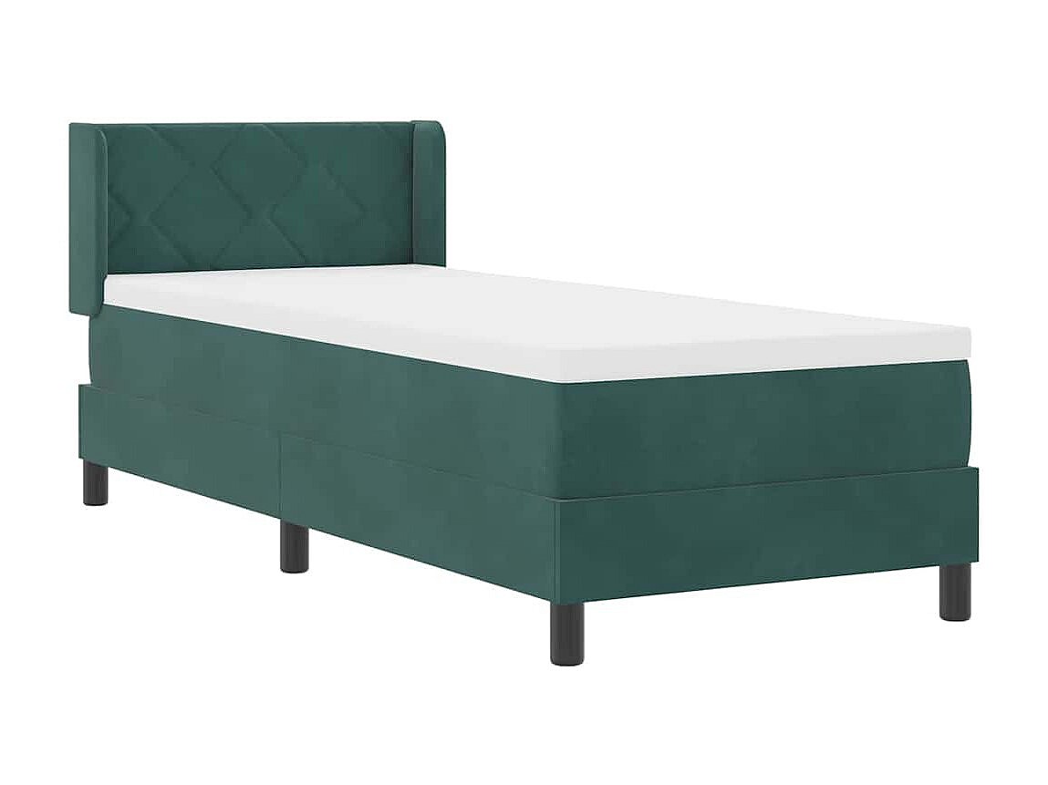 Cama box spring con colchón terciopelo verde oscuro 80x220 cm