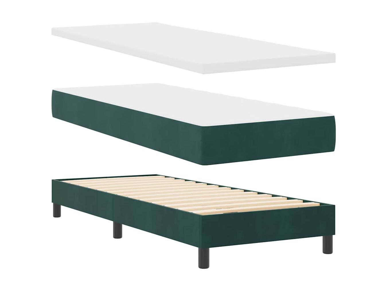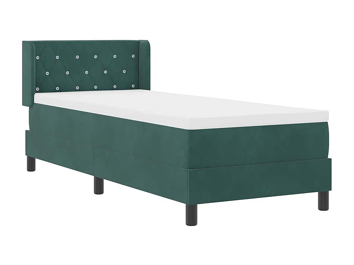 Cama box spring con colchón terciopelo verde oscuro 80x220 cm