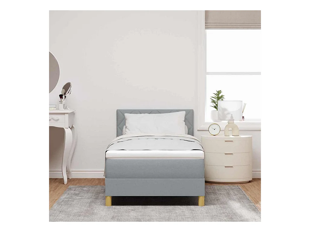 Cama con somier y colchón Tejido gris claro 90 x 190 cm