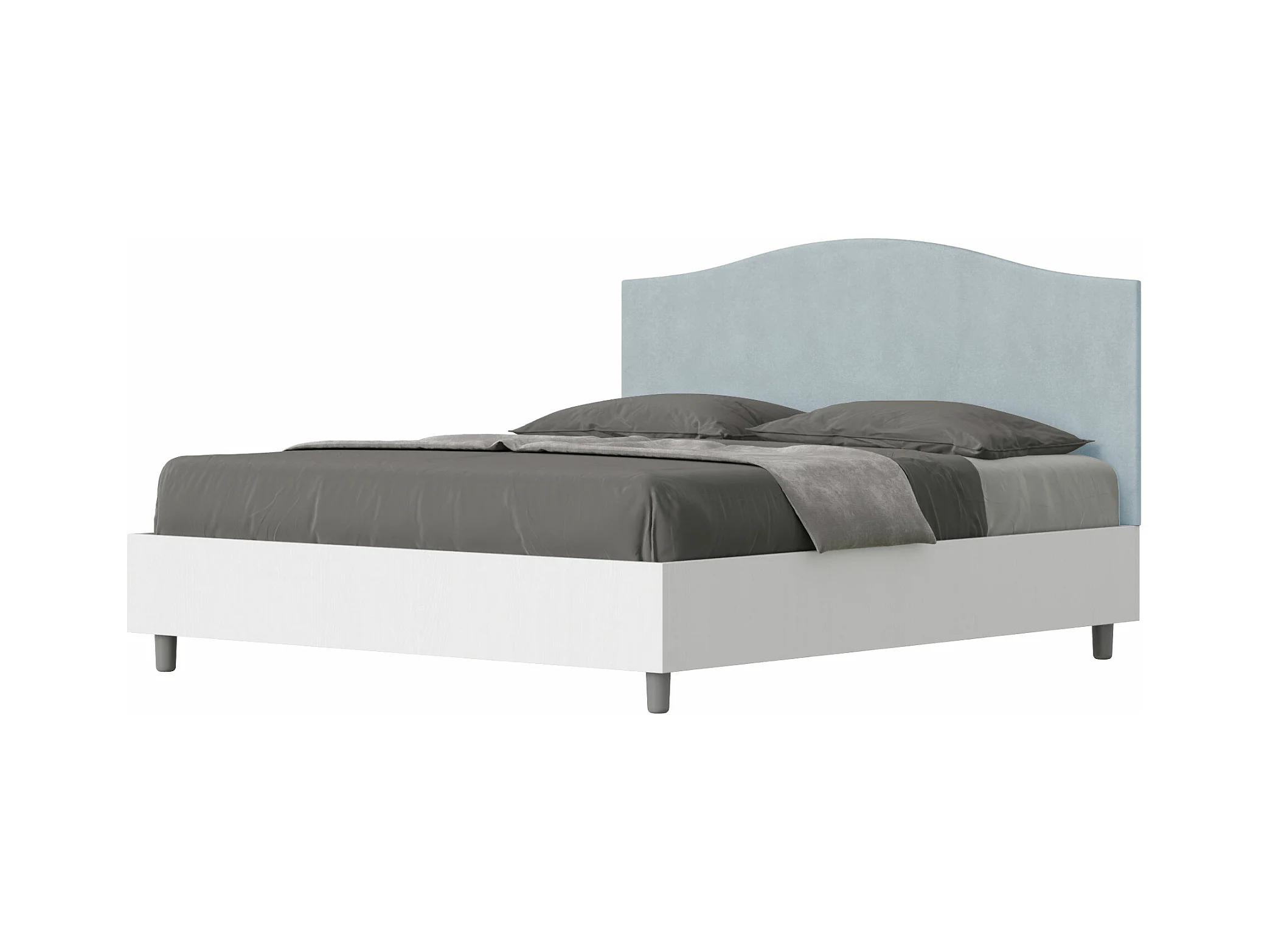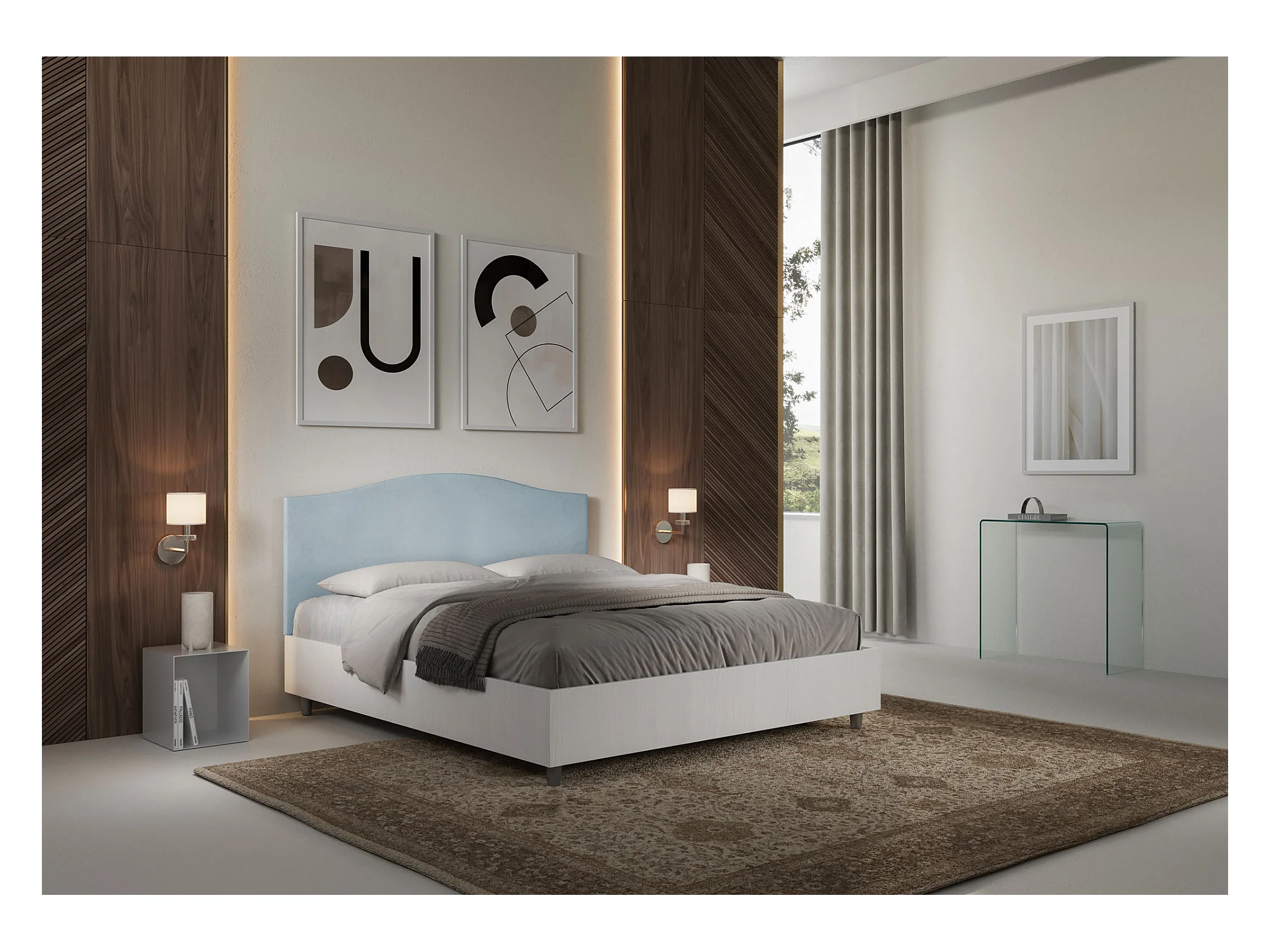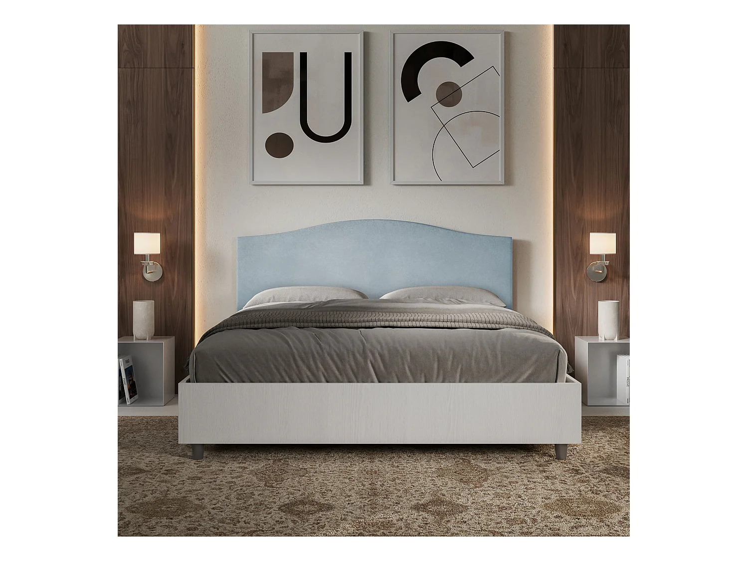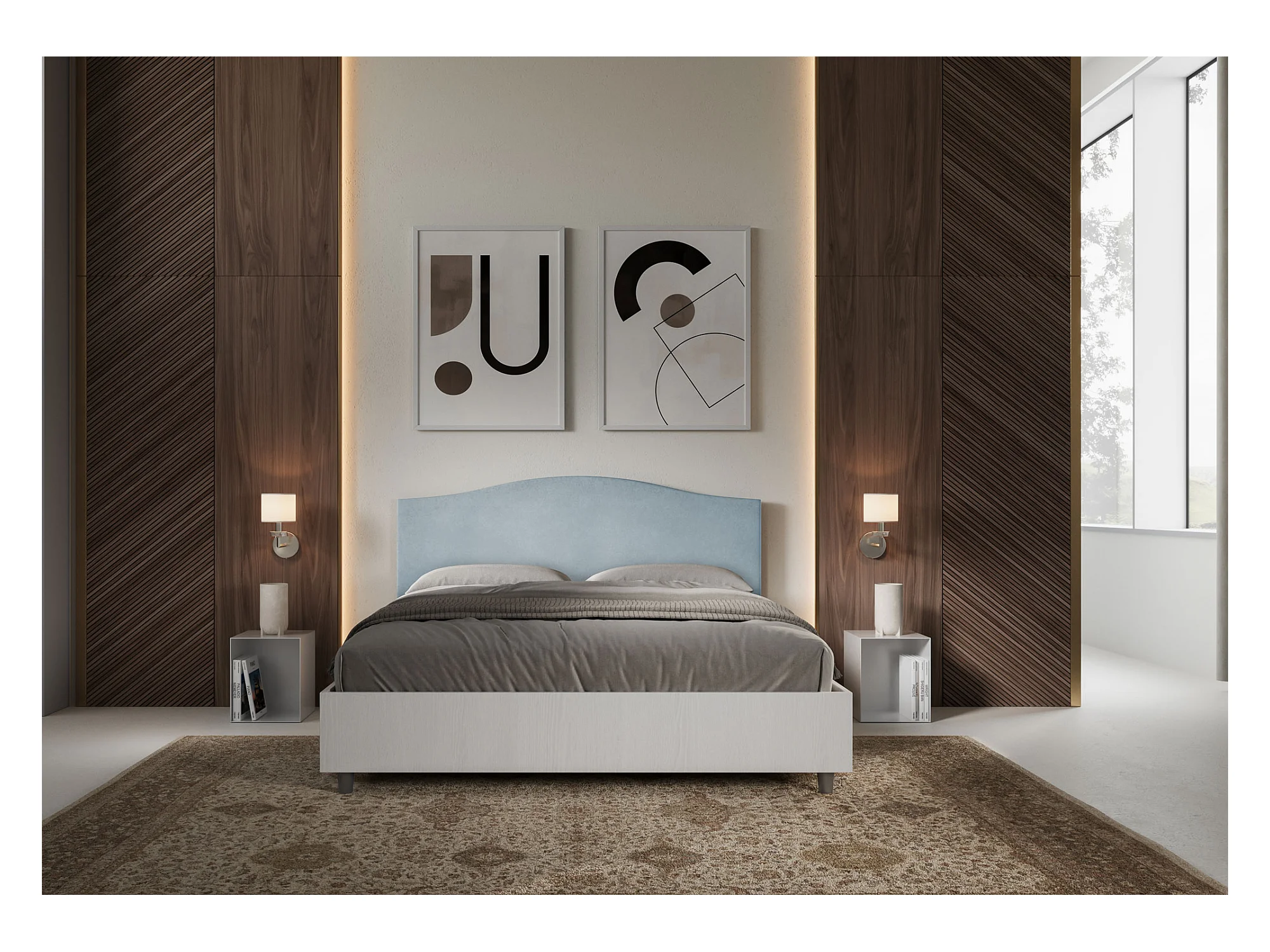 Cama contenedor 160x190 estructura fresno blanco con cabecero Grace melamina/microfibra azul claro