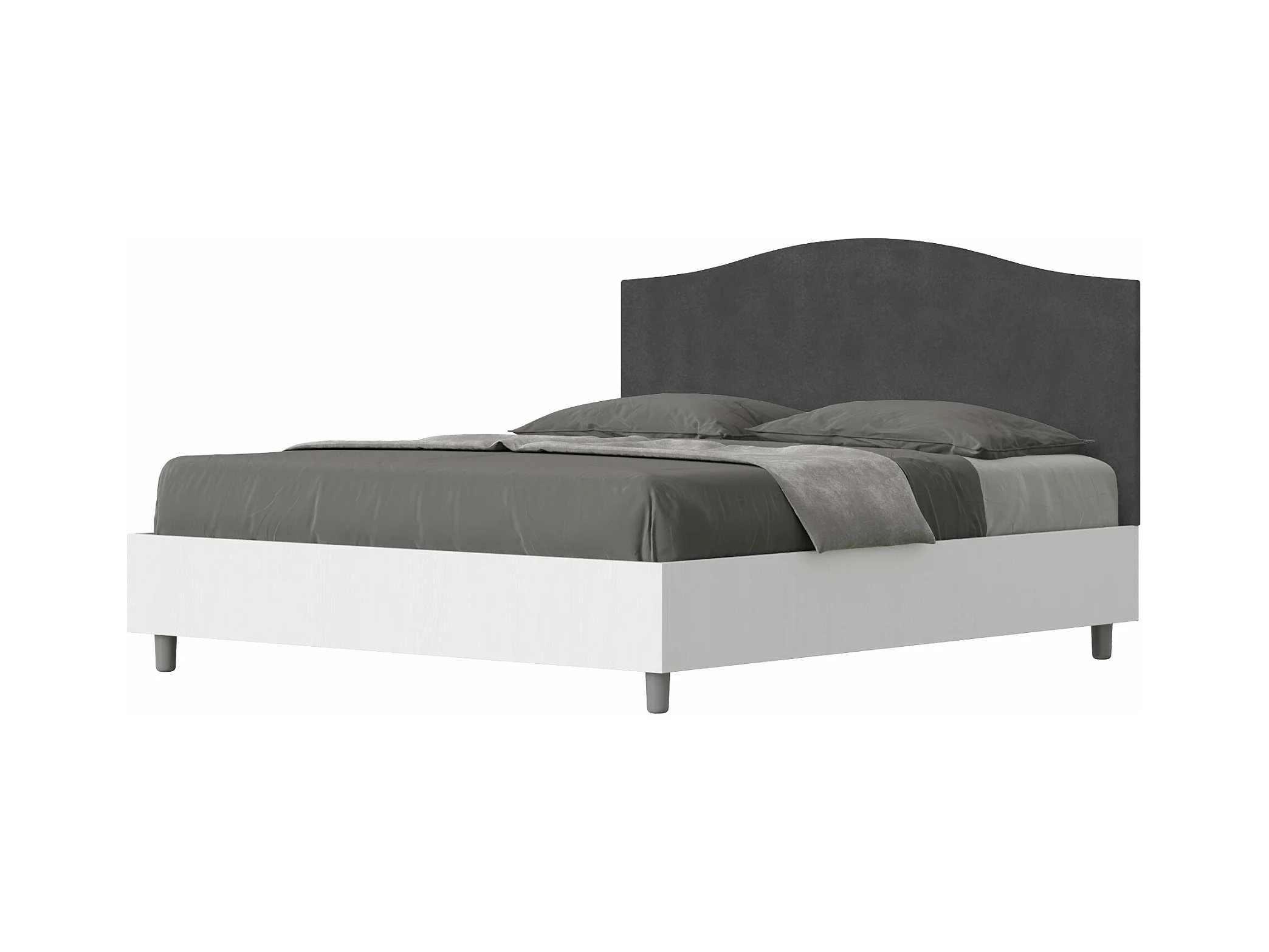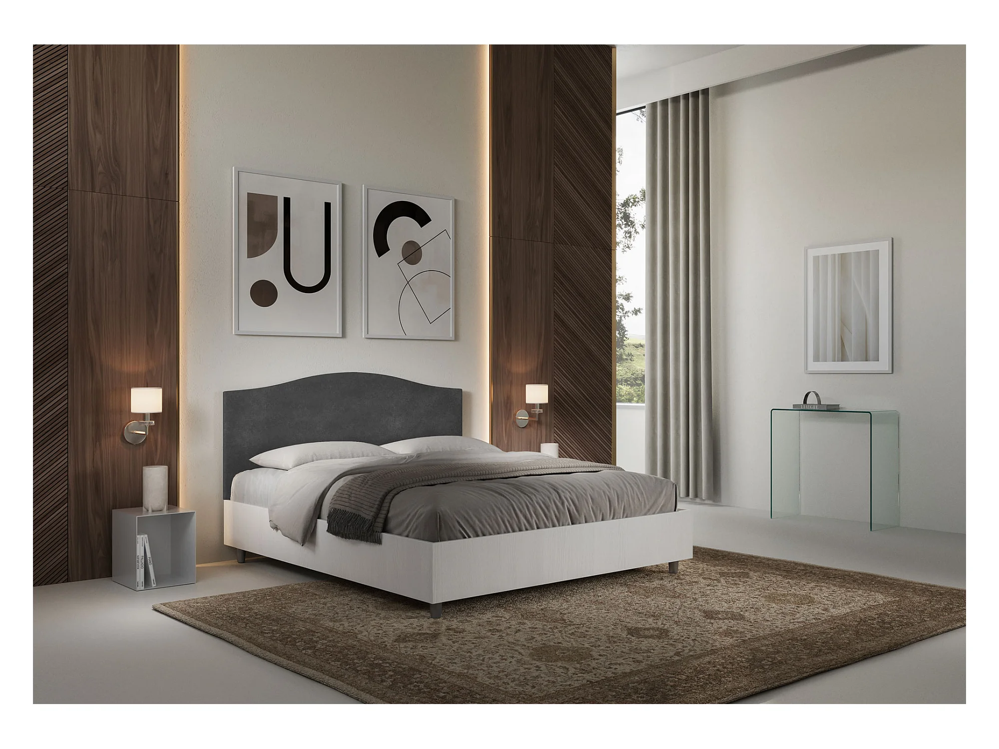 Cama contenedor 160x190 estructura fresno blanco con cabecero melamina/microfibra gris Grace
