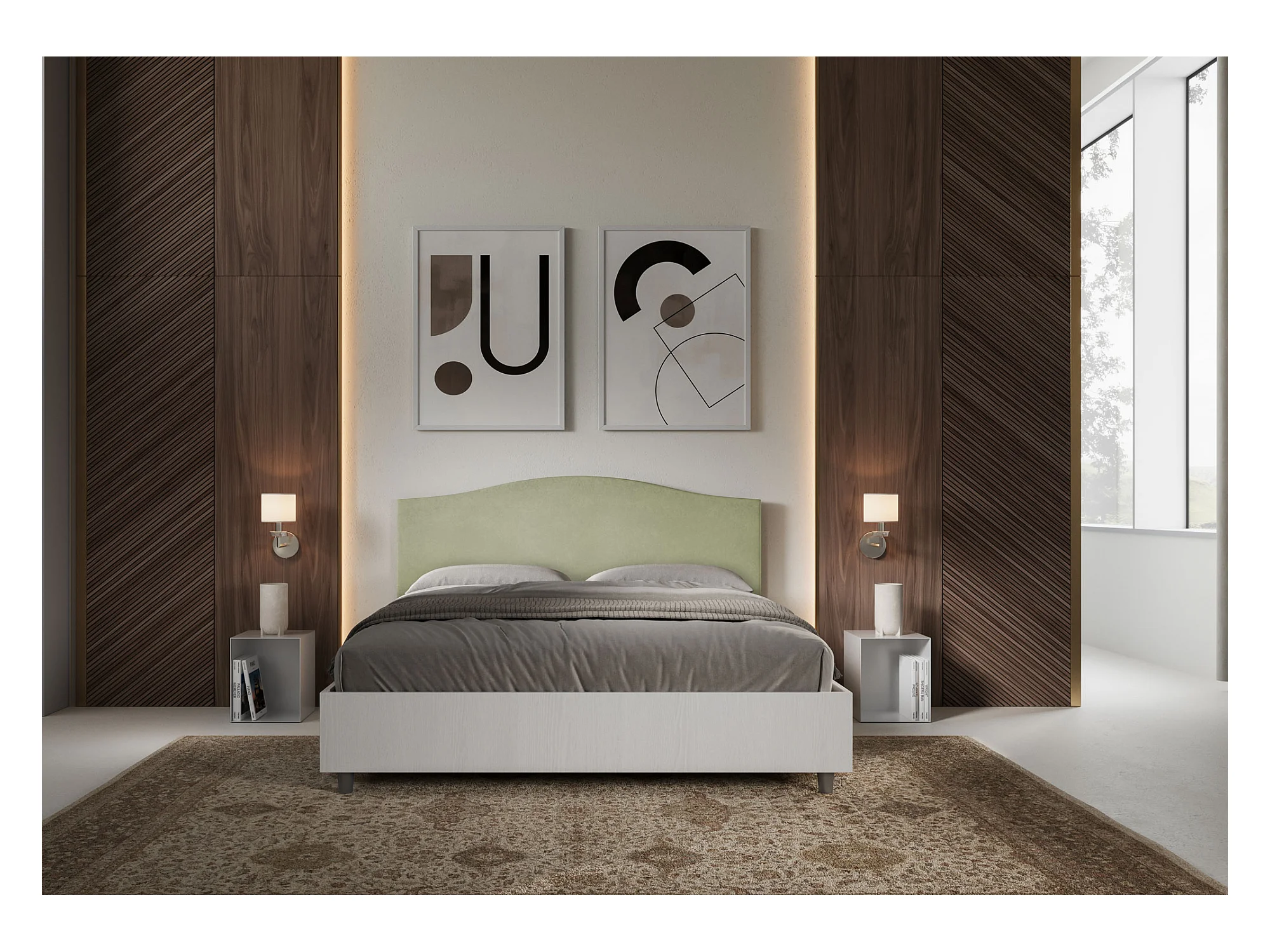 Cama contenedor 160x200 estructura de fresno blanco con cabecero de microfibra Grace verde té
