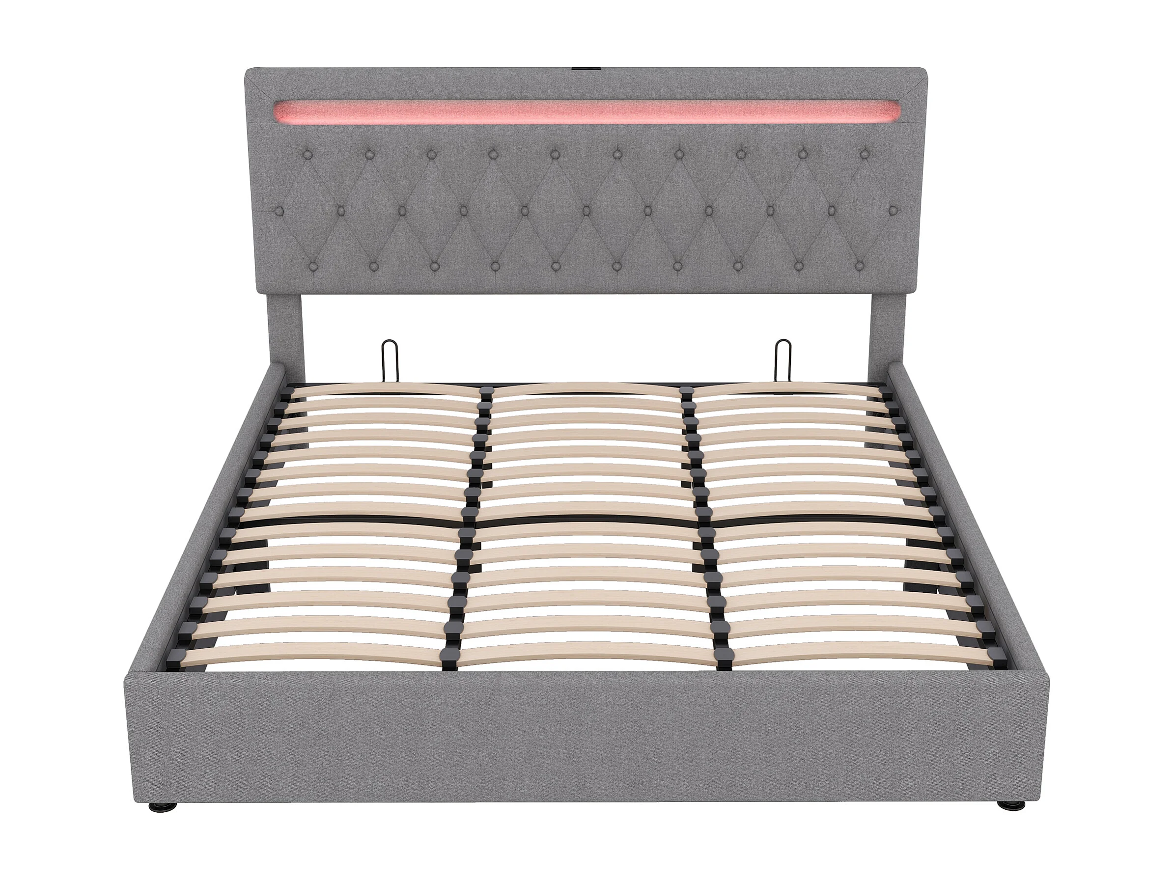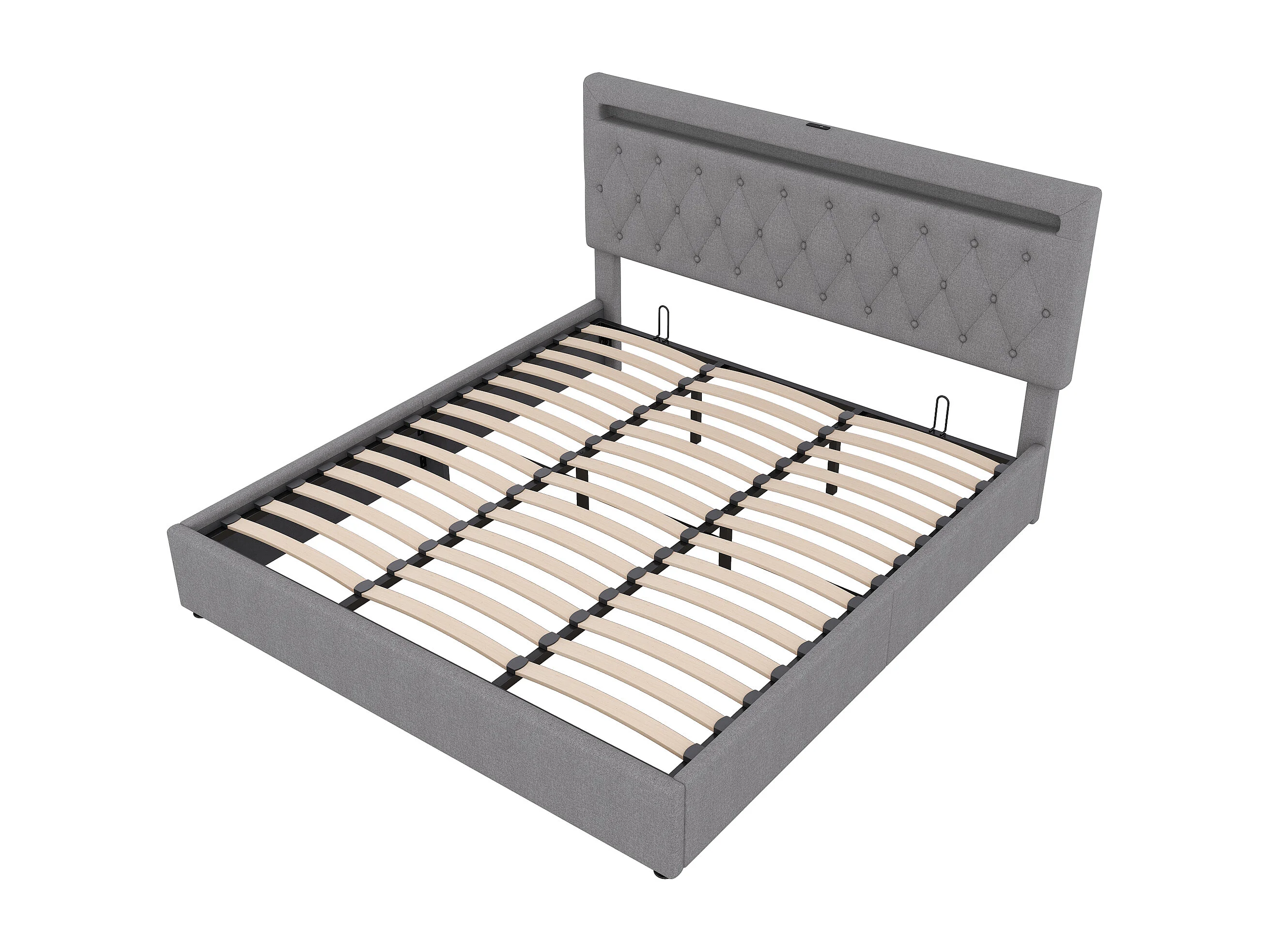 Cama contenedor 180 x 200 cm con cabecero - Toma USB y LED - Tela de lino - color gris