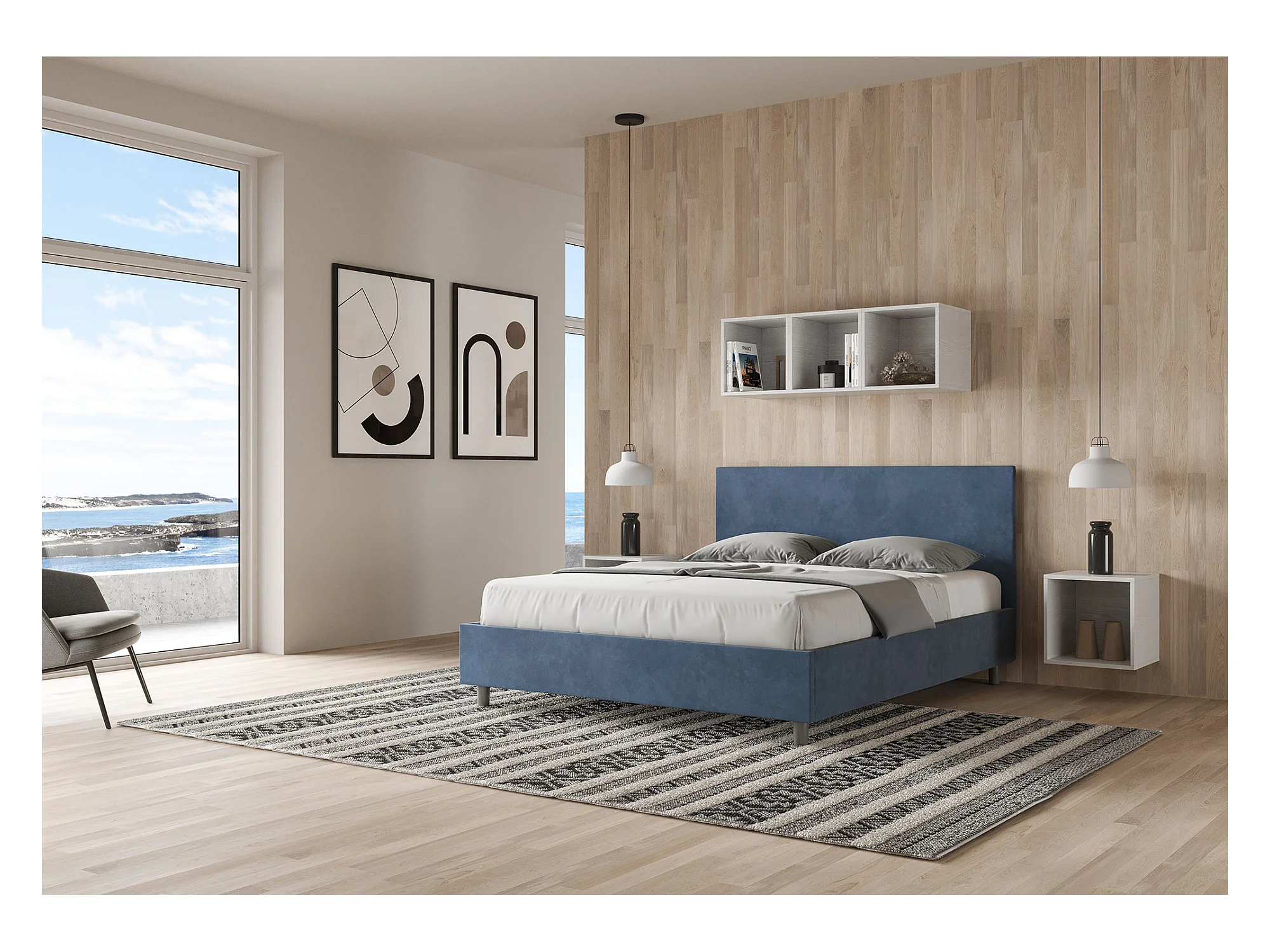 Cama contenedor tapizada en microfibra azul Adele 160x190