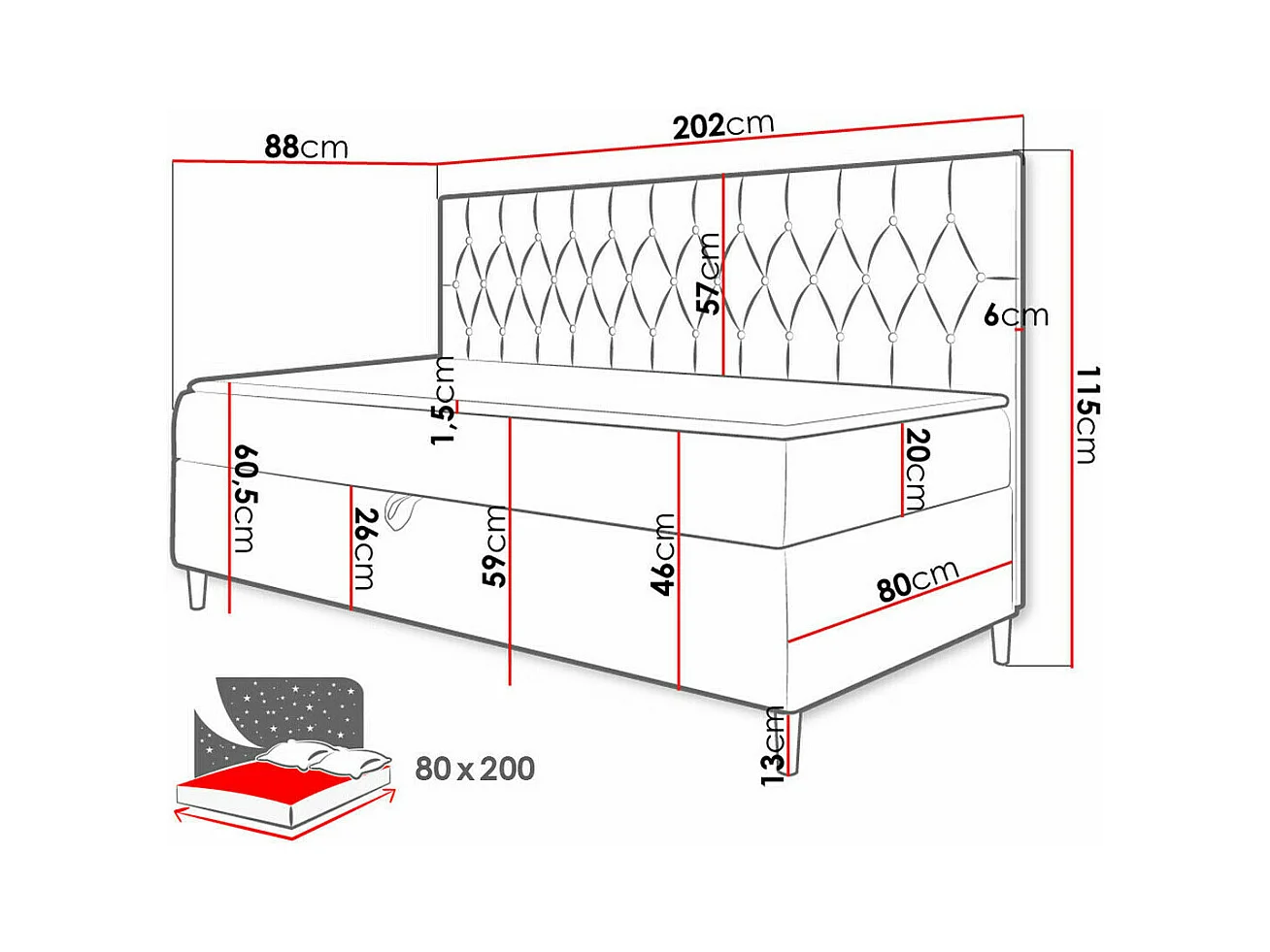 Cama continental Baltimore 166, Individuales, Continental, Gris, 80x200, Somieres, 88cm