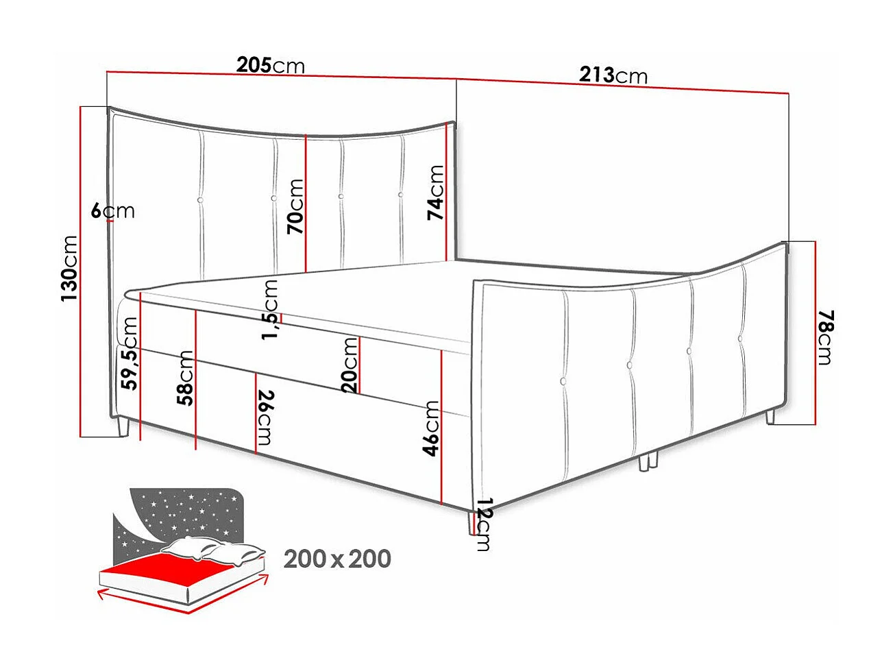 Cama continental Baltimore 173, Continental, Doble, Marrón, 200x200, Tapiz, Somieres,