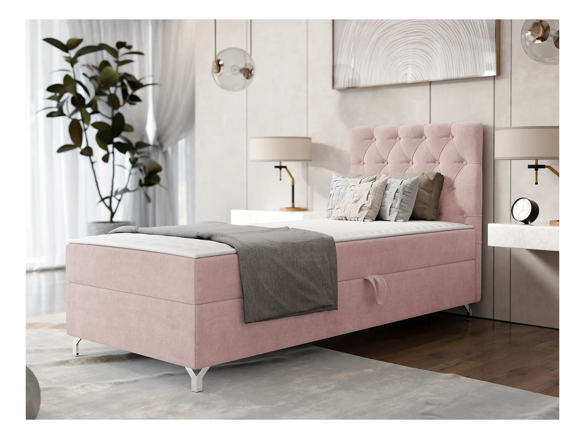 Conjunto Boxspring - 80x200 cm + colchón terciopelo rosa ES102642