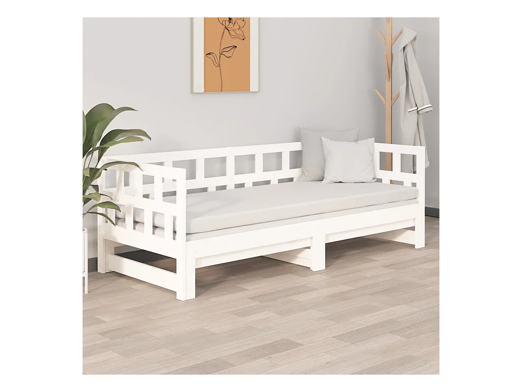 Daybed con colchón 90x200 cm Blanco Madera maciza de pino