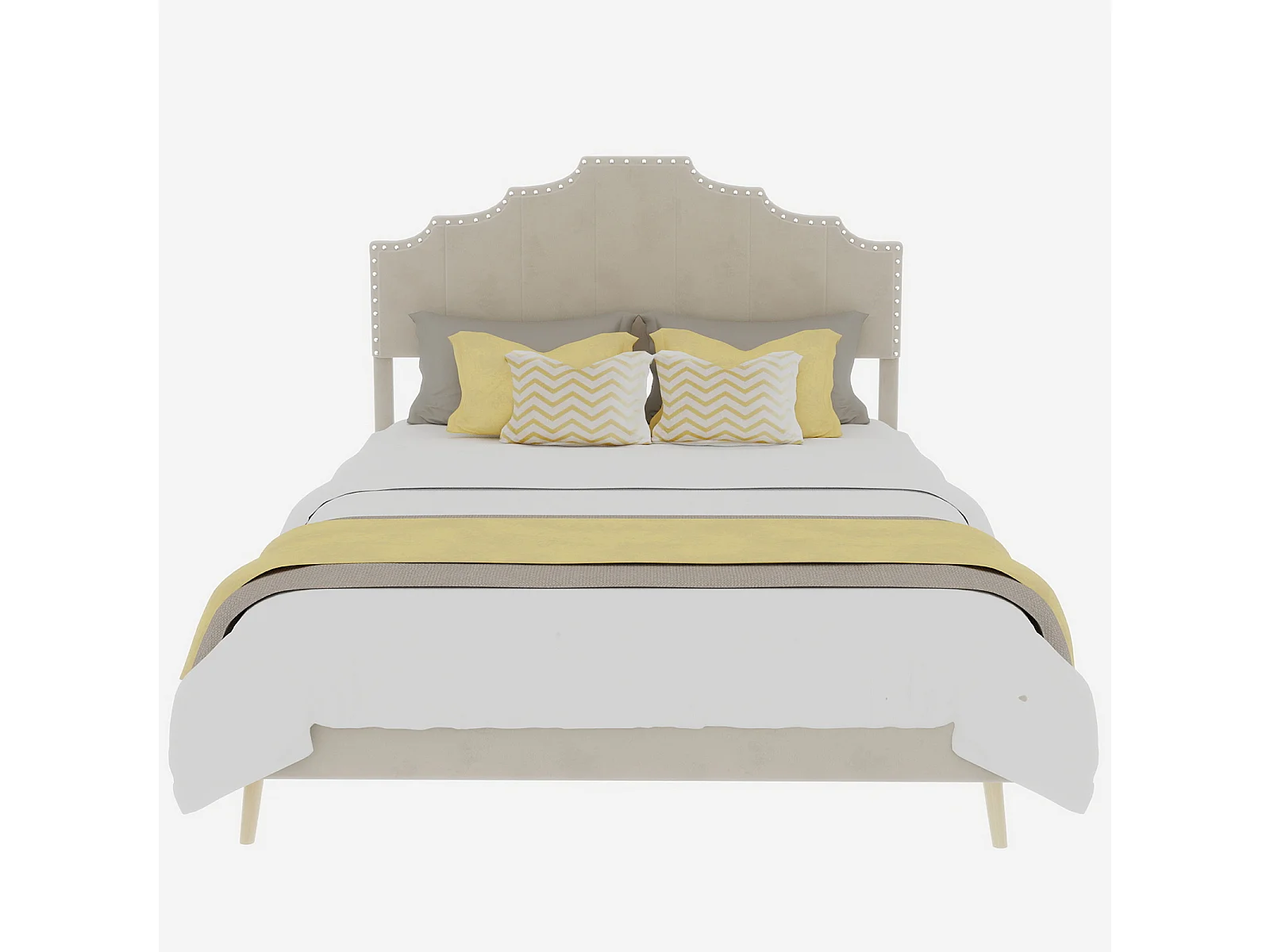 Cama de adulto de 160x200 cm, cama doble con cabecero tapizado y somier de láminas - terciopelo - beige (sin colchón)