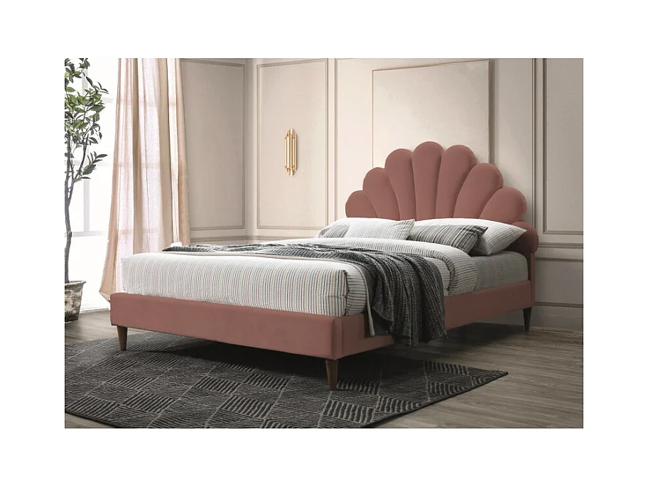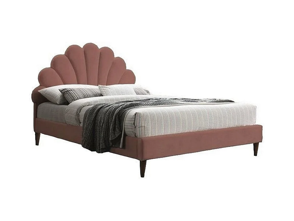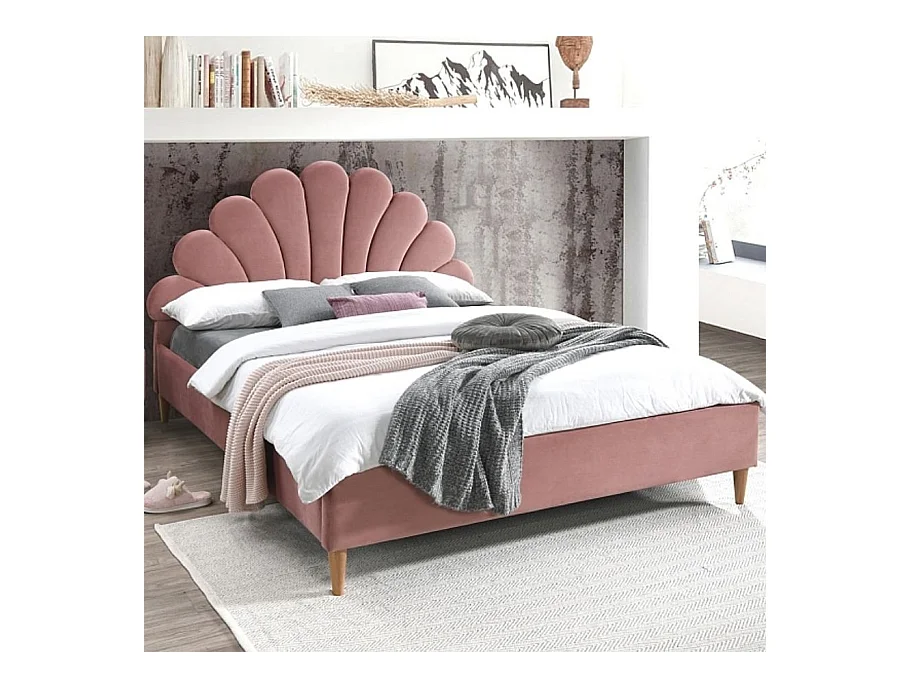 Cama de concha de terciopelo rosa Sohan 160 x 200 cm