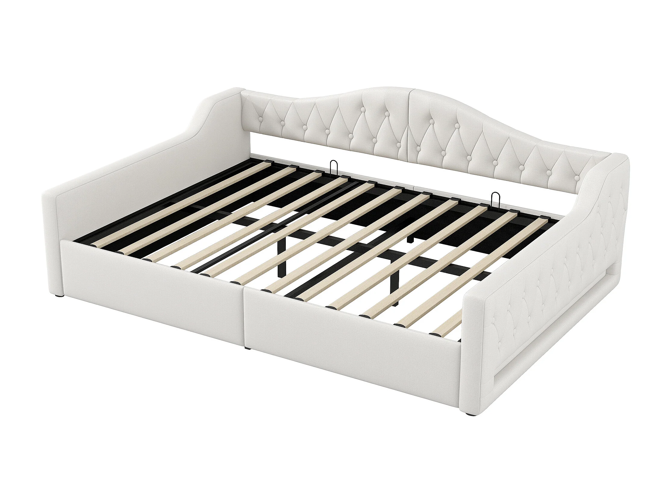 Cama de día 140x200 cm en lino beige - Cama de adulto con canapé y LED