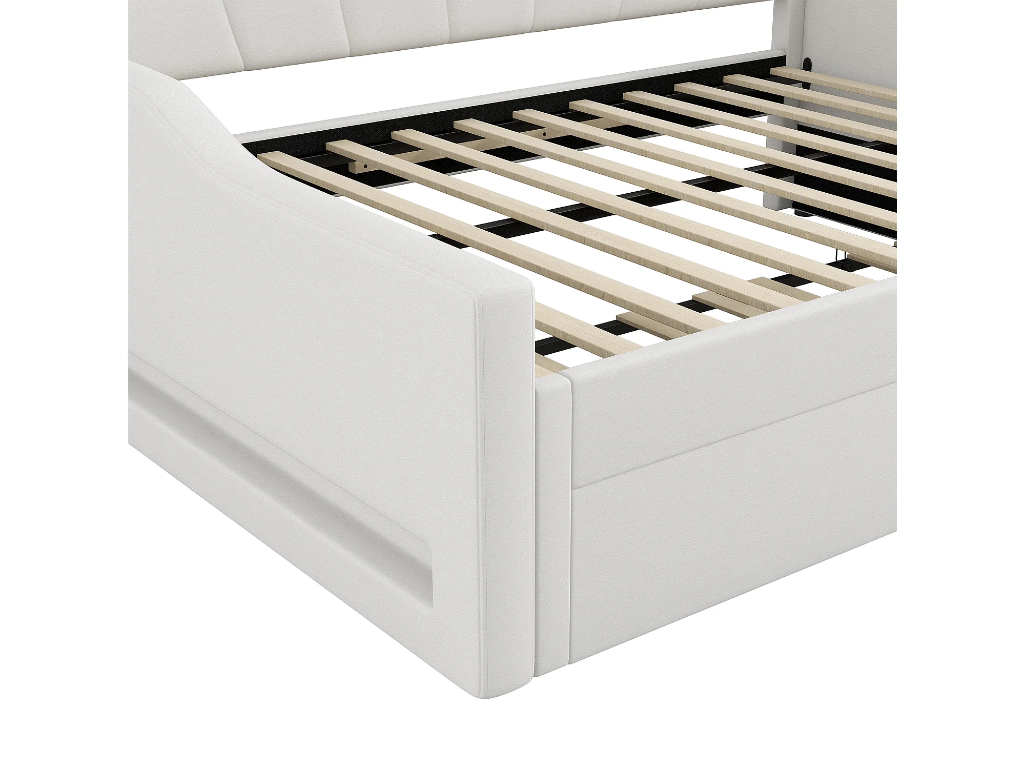 Cama de día 140x200 con almacenaje, tejido de lino beige, con LED y cama abatible (212x148,5x84 cm)