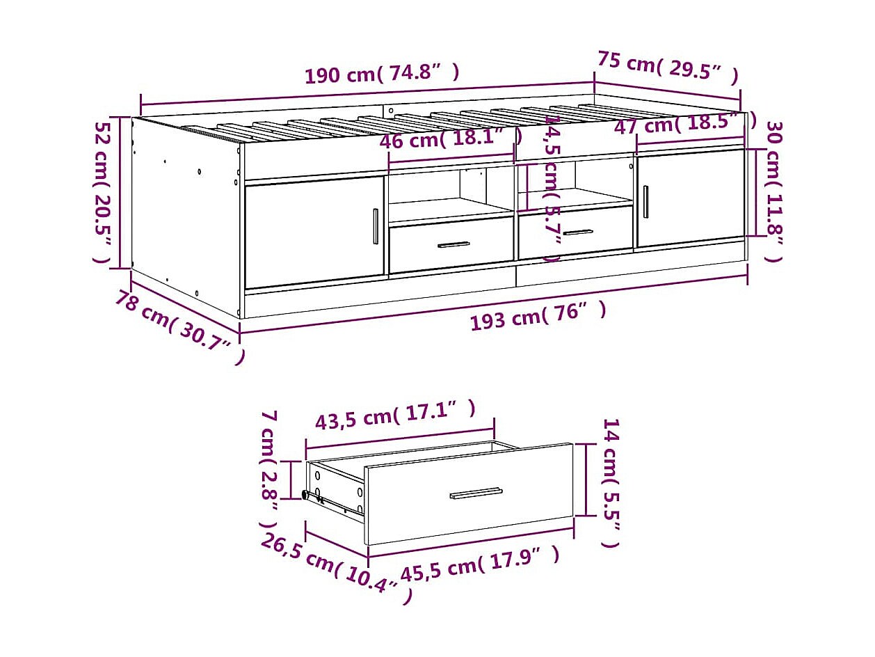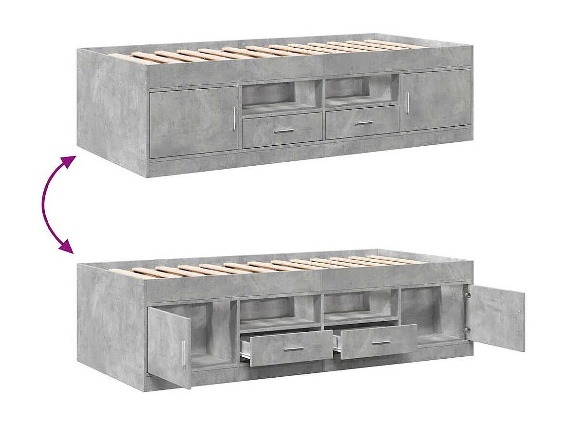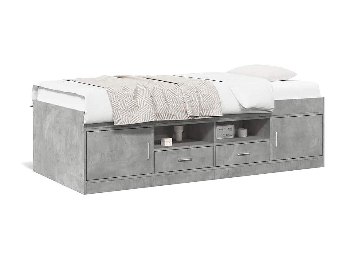 Cama de día con cajones sin colchón gris hormigón 75x190 cm