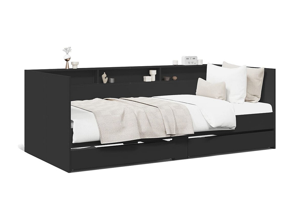 Estructura de cama esquinera con cabecero Terciopelo Negro 90 x 200 cm