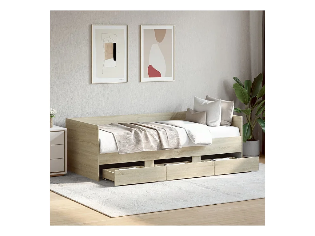 Cama de día con cajones sin colchón roble sonoma 75x190 cm