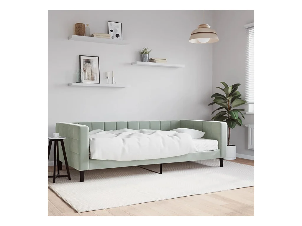 Cama de día con colchón de terciopelo gris claro de 100x200 cm