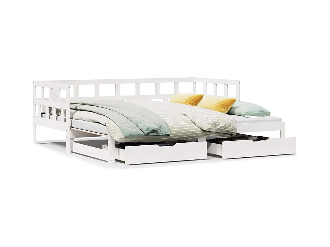 Cama de día y cajones sin colchón blanco 90x190 cm madera maciza