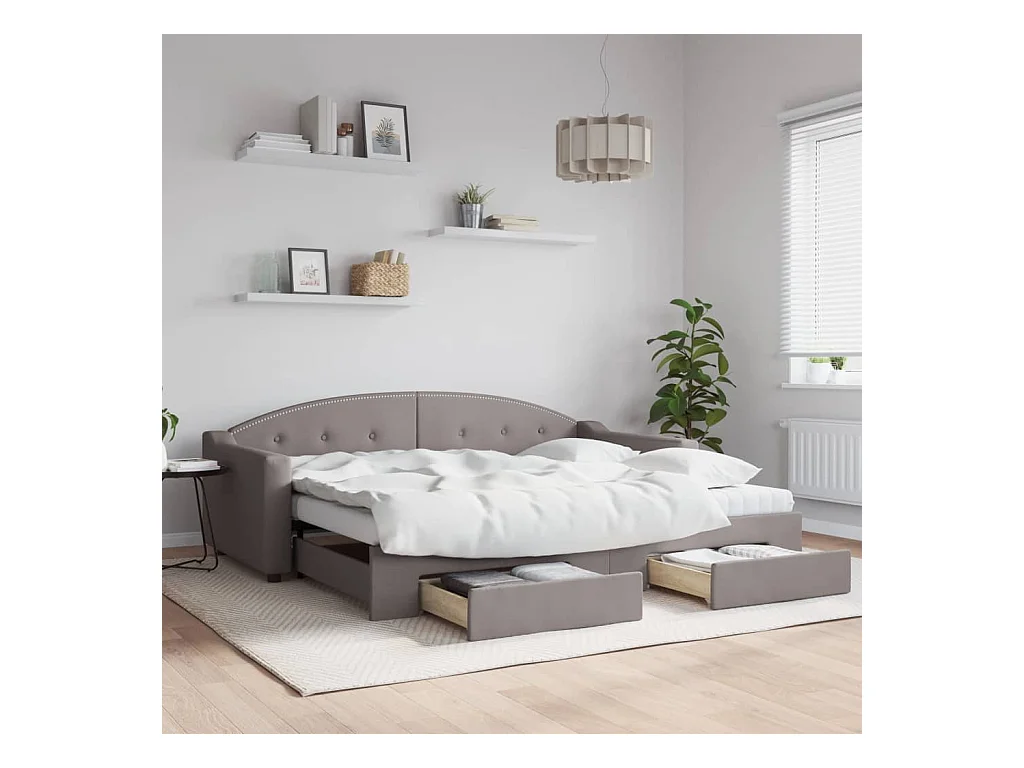 Cama de día con nido y cajones sin colchón color topo 90x200cm