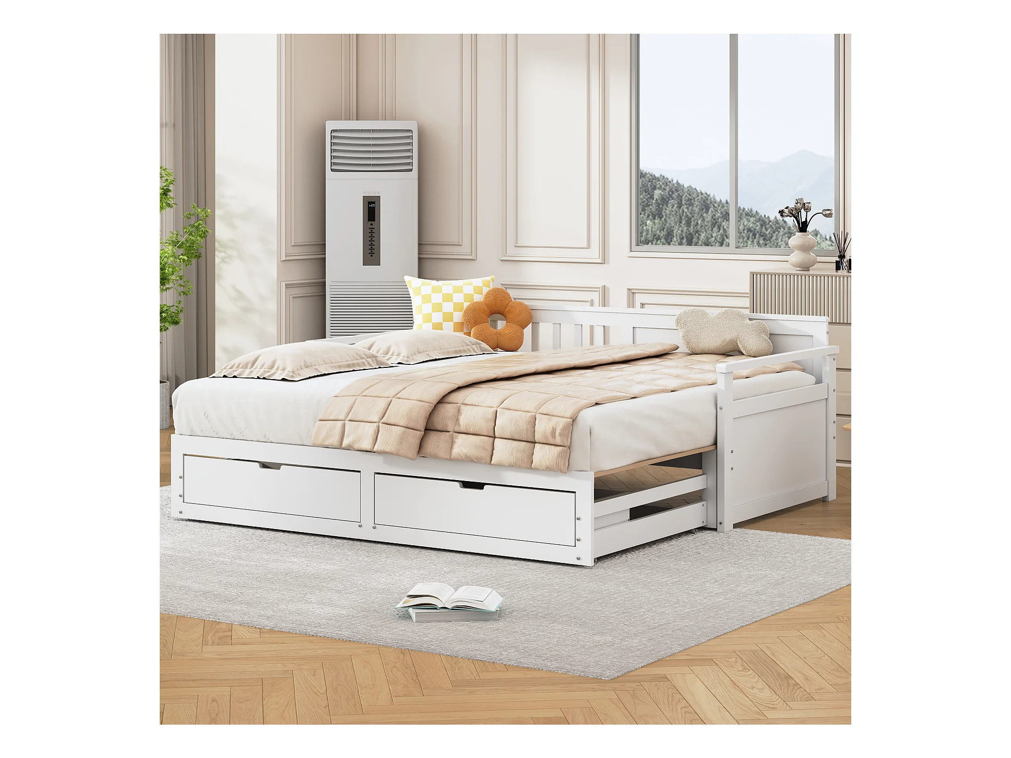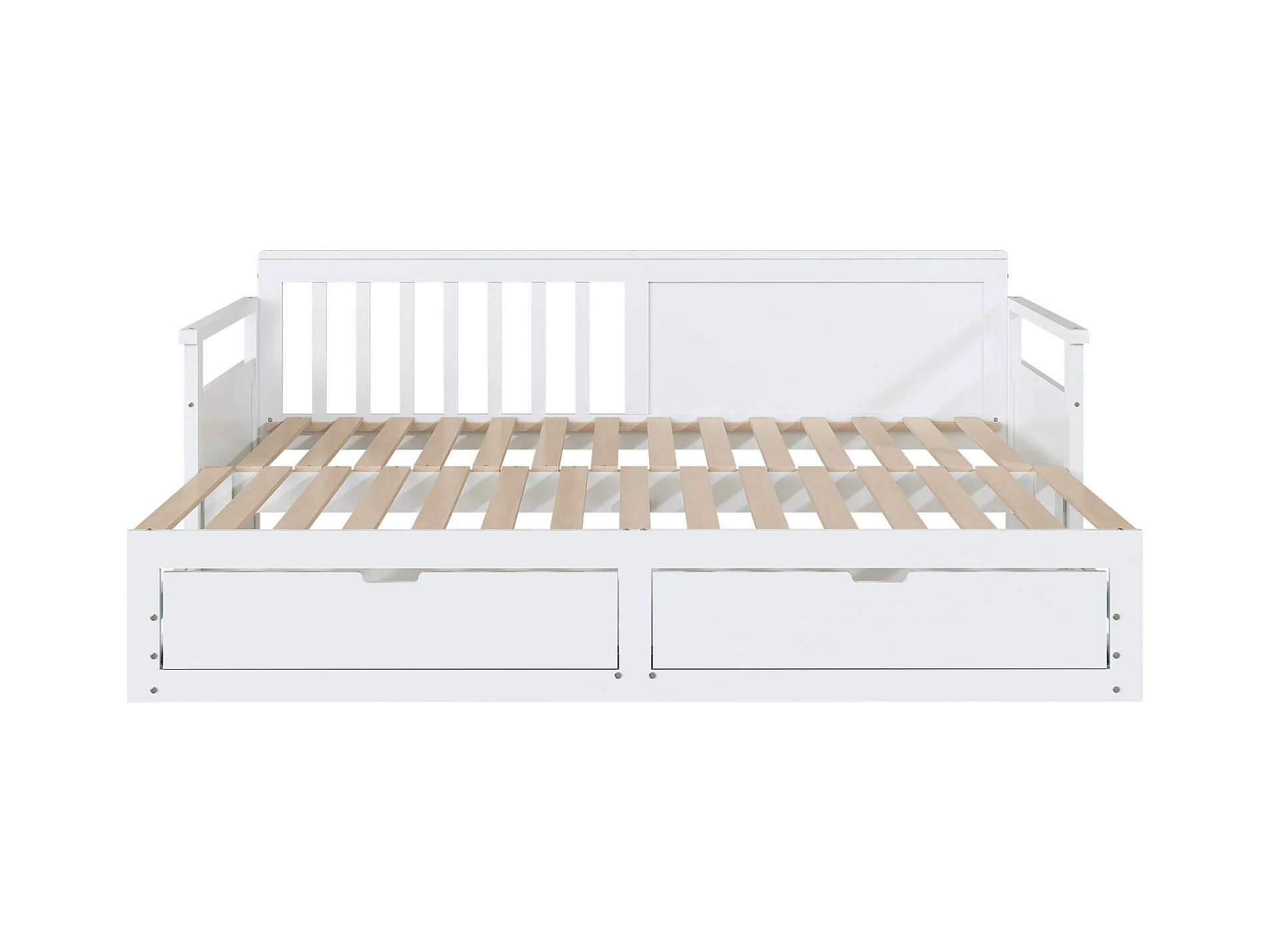 Cama de día multifuncional 2 en 1 con cama de pino, cajones y cama nido blanca