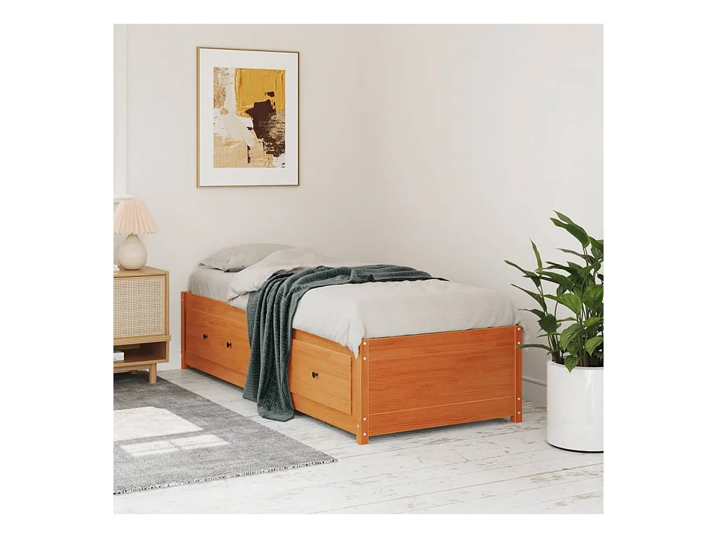 Cama con cajones/colchón encerado marrón 90x190 cm madera maciza de pino