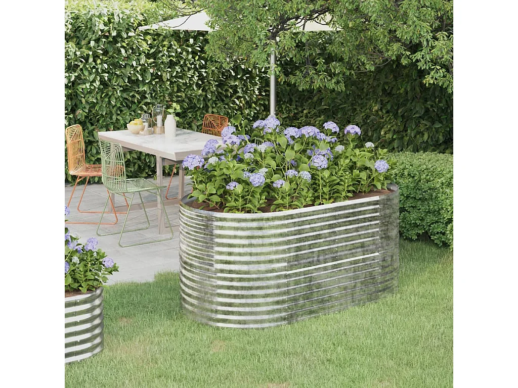 Cama de jardín elevada de acero con recubrimiento en polvo plateado