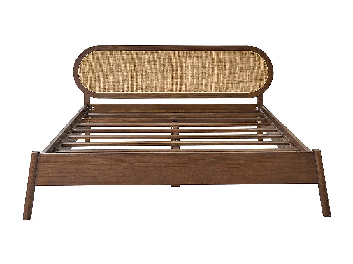 Cama de madera maciza y rejilla con acabado nogal 160 cm