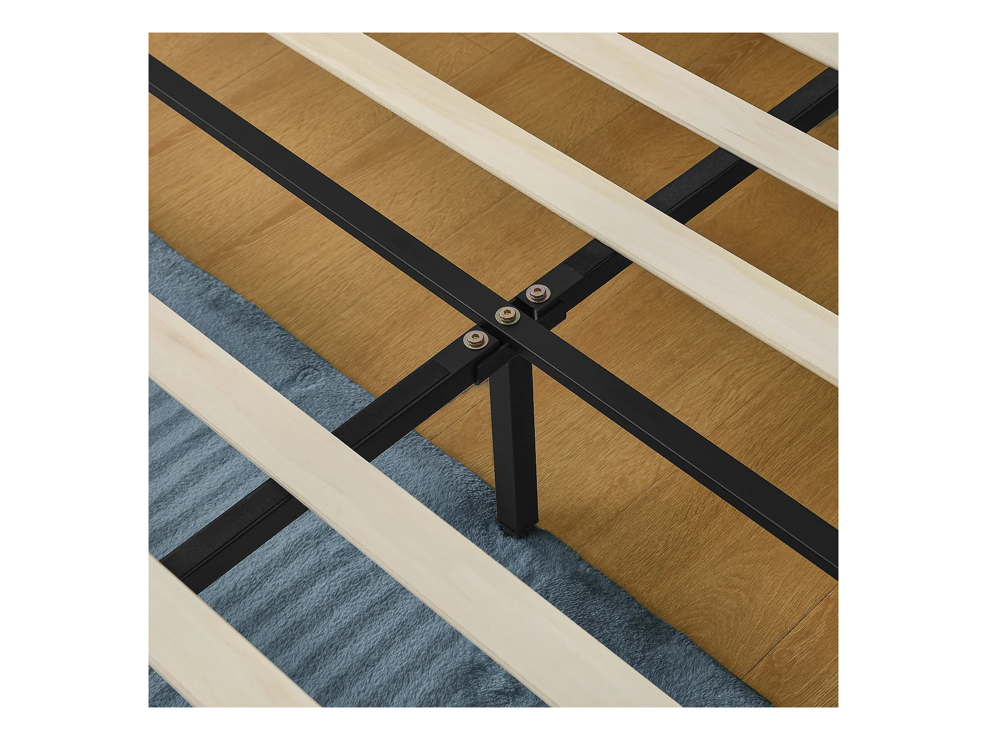 Cama doble tapizada 140x200cm con LED, base de metal y cabecero regulable en lino beige (210x151x116cm)