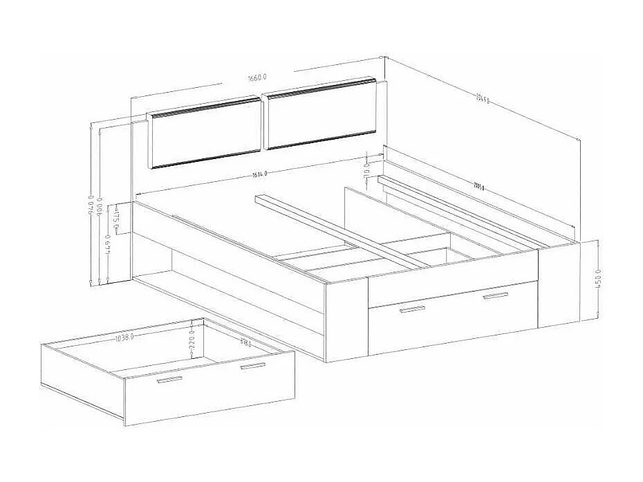 Cama de matrimonio 160x200 con almacenaje y somier de lamas color roble oscuro Tiara