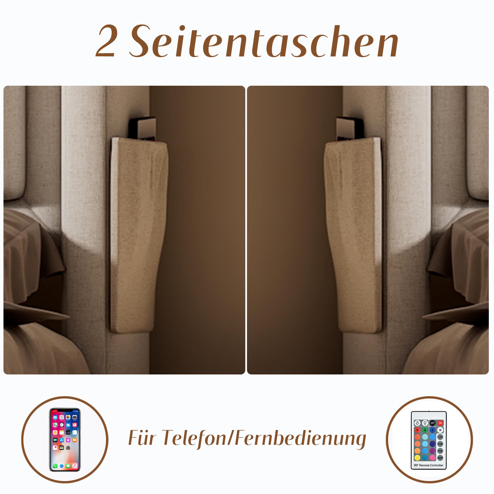 Cama con canapé con LED RGB y puertos USB-C/USB – 160x200 cm – Tejido beige – Cabecero ajustable – Gran capacidad de almacenaje
