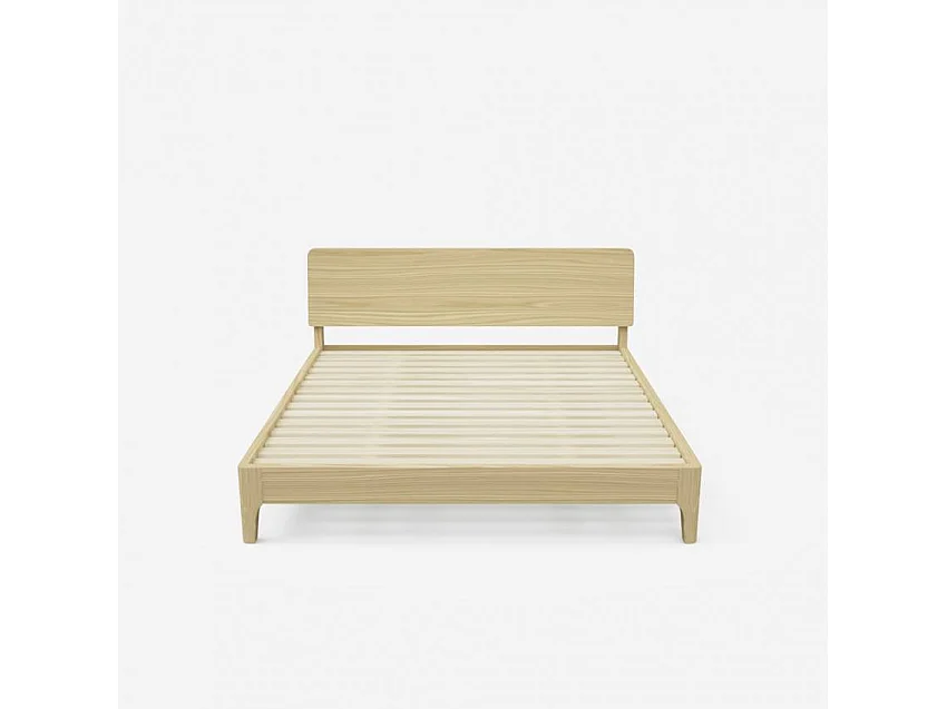 Cama de matrimonio diseño moderno de madera 160 x 190 cm somier cabecero Linz - Natural