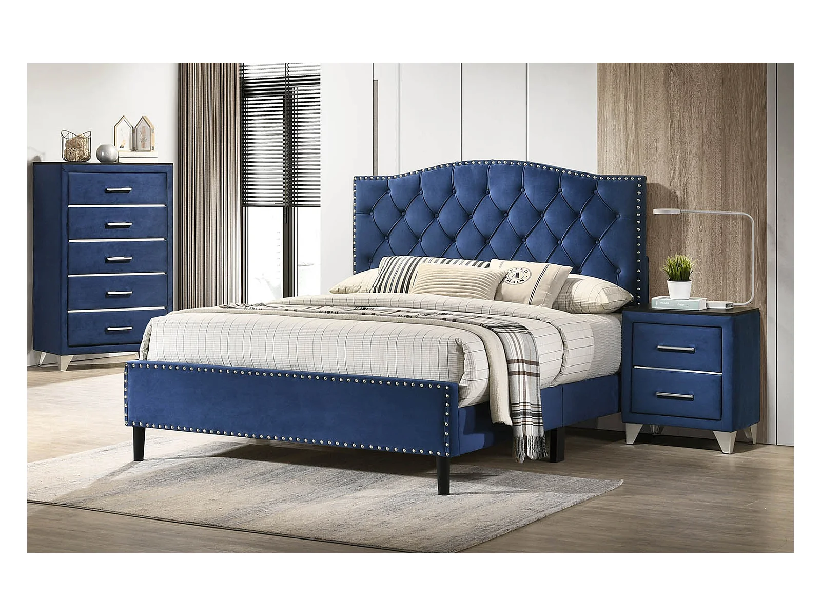 Cama de Matrimonio Jessy 135cm Azul en terciopelo
