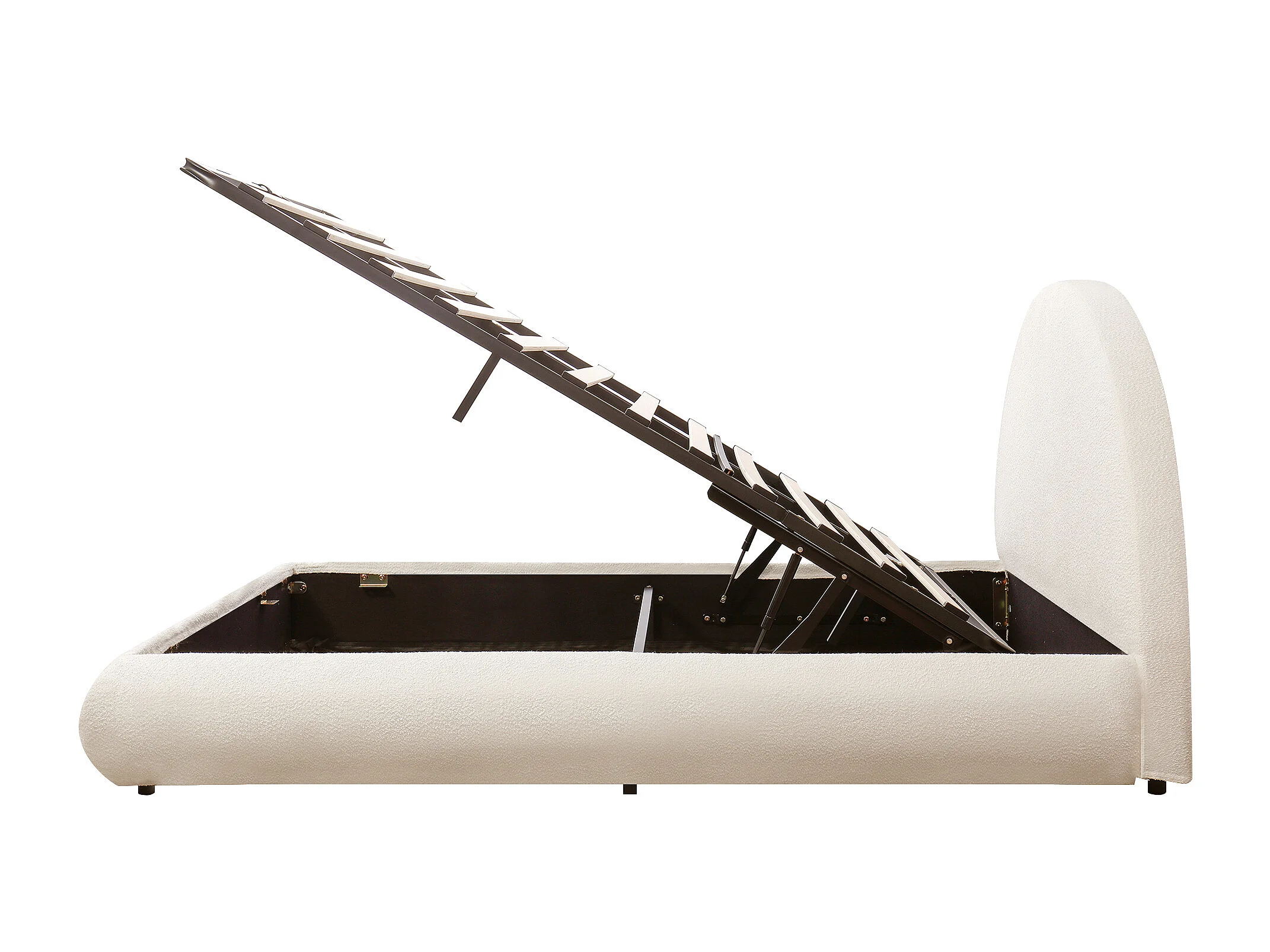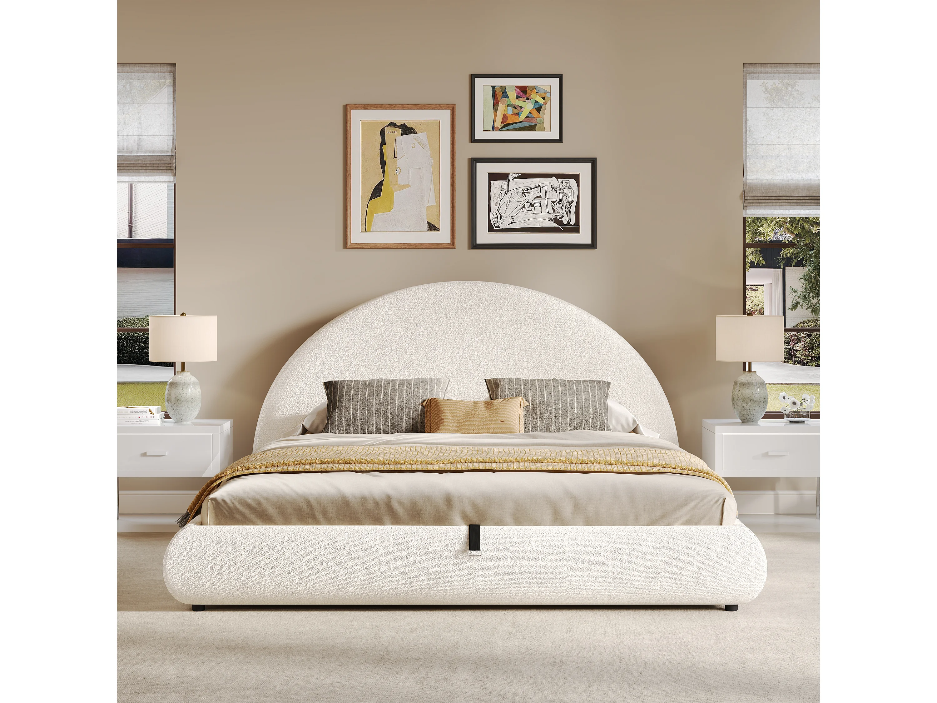 Cama de matrimonio para adultos de 180 x 200 cm con cabecero semicircular y canapé en tejido bouclé, color beige