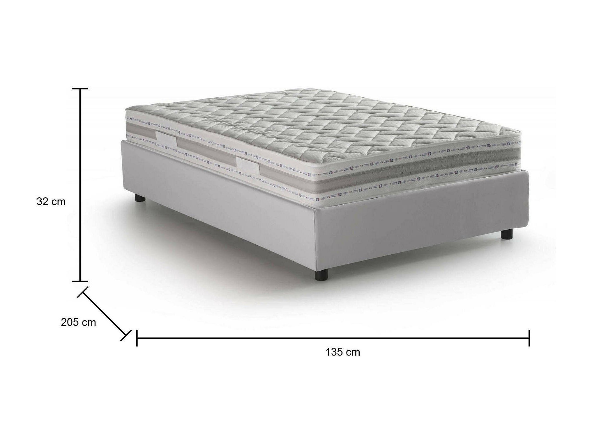 Cama de plaza y media Dabbel, Cama contenedor con tapizado en ecopiel, 100% Made in Italy, Apertura frontal, con colchón Cm 120x190 incluido, Blanco