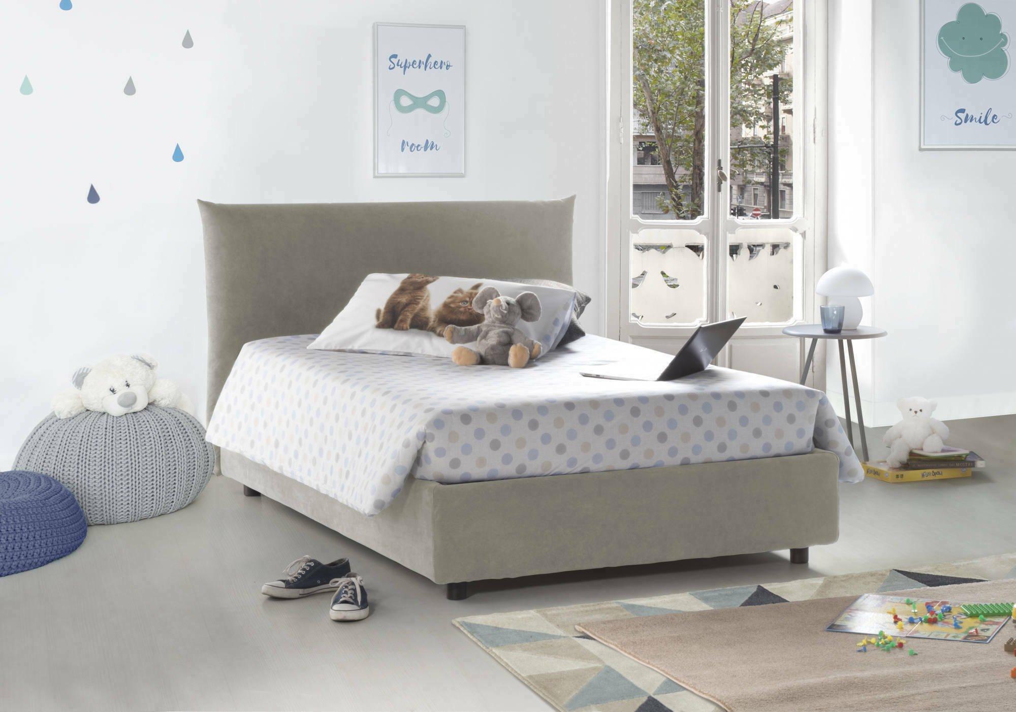 CAMA DE PLAZA Y MEDIA - Cama contenedor con revestimiento de tela, 100% Made in Italy, Apertura frontal, con colchón Cm 120x190 incluido, Beige.